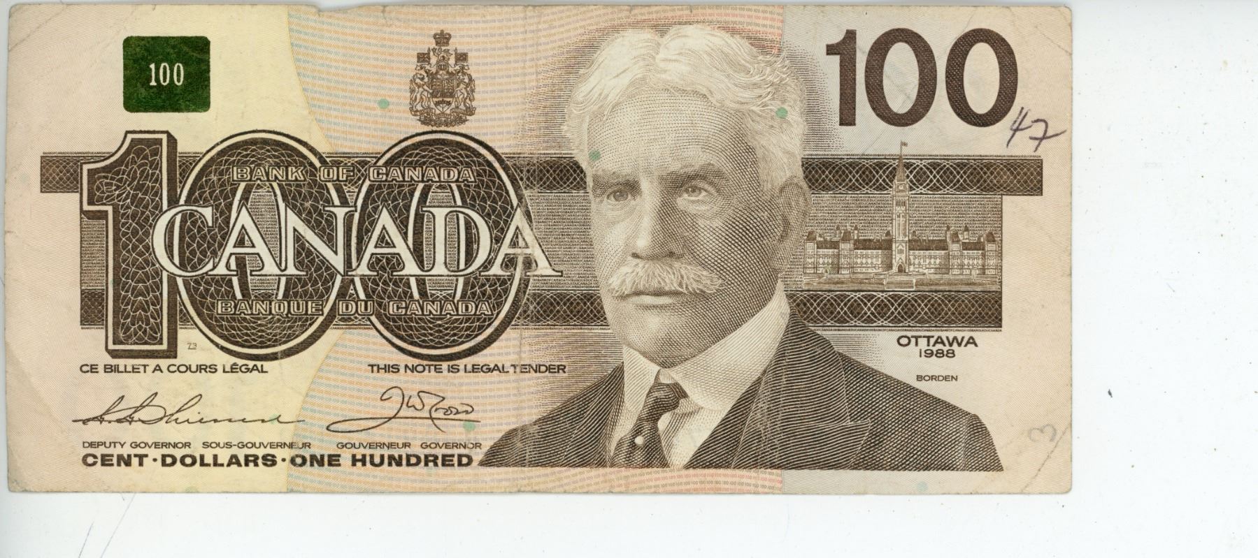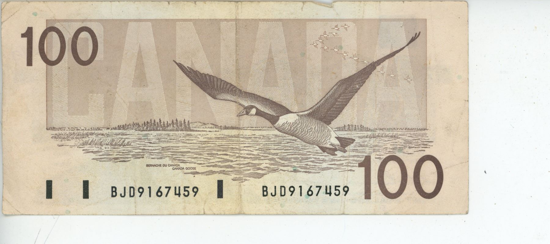 1988 Canadian 100 dollar bill - Thiessen/Crow - BJD9167459