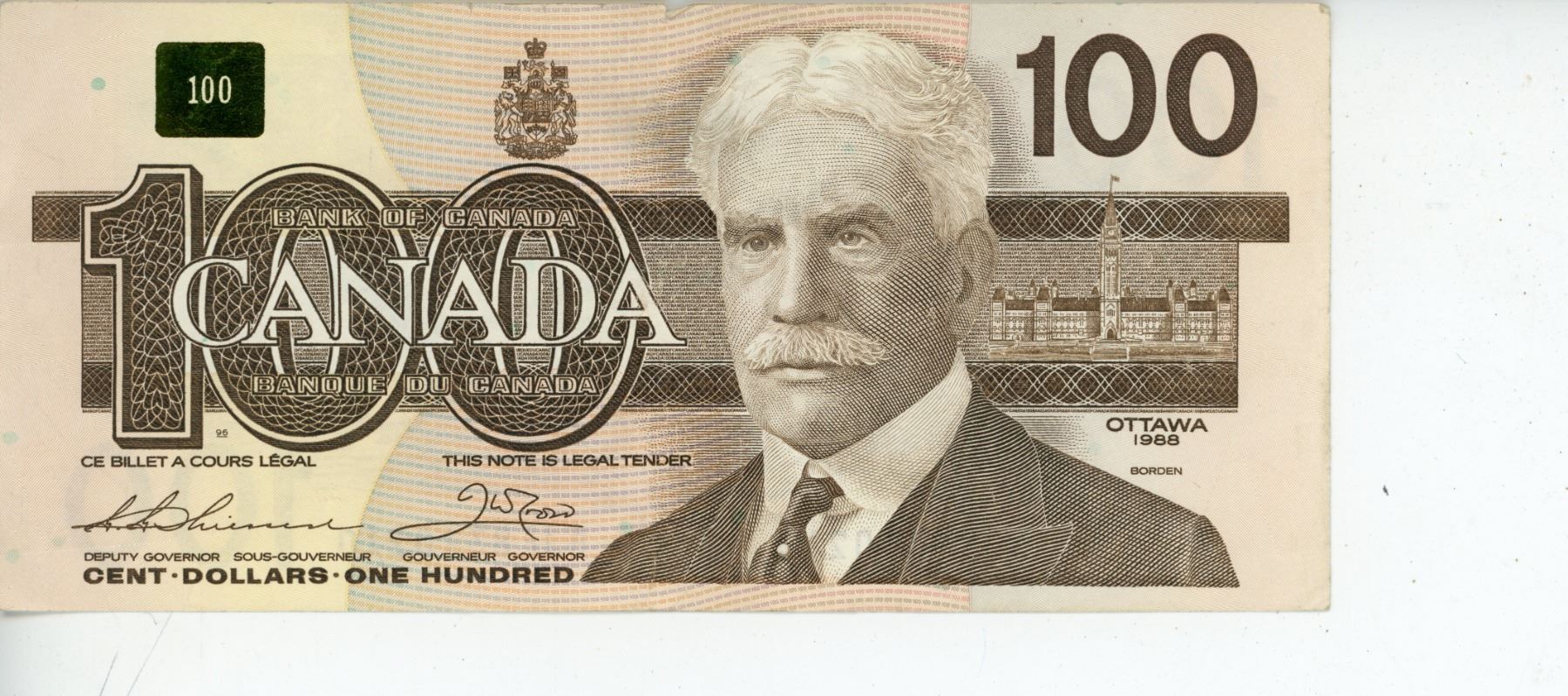 1988 Canadian 100 dollar bill - Thiessen/Crow - BJF8310210