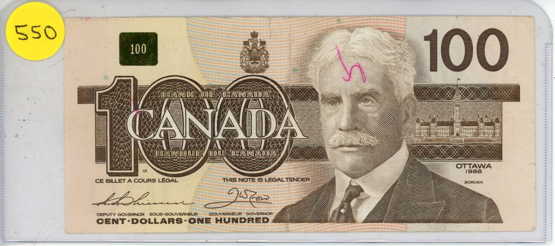 1988 Canadian Hundred Dollar.