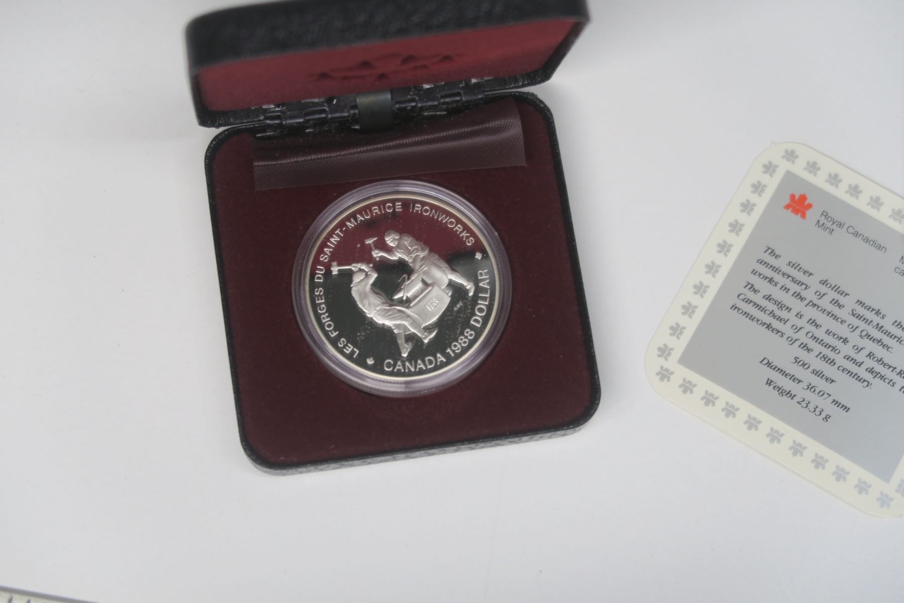 1988 Canadian Silver Dollar. Commemorates the 250th Anniversary of Saint-Maurice Ironworks, Canada’s first heavy industry. Proof. Housed in its original case.