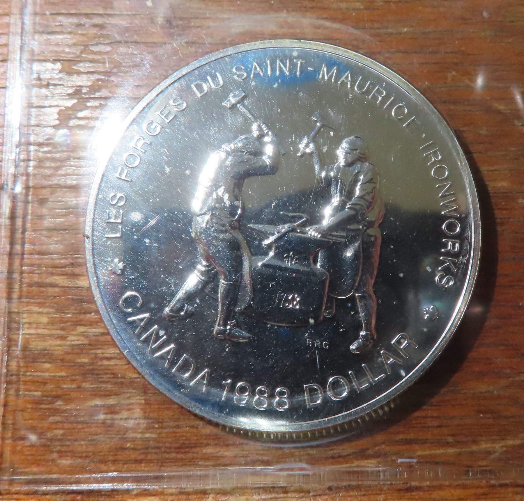 1988 Canadian Silver Dollar. Commemorates the first heavy industry in Canada. Specimen. Bright White.