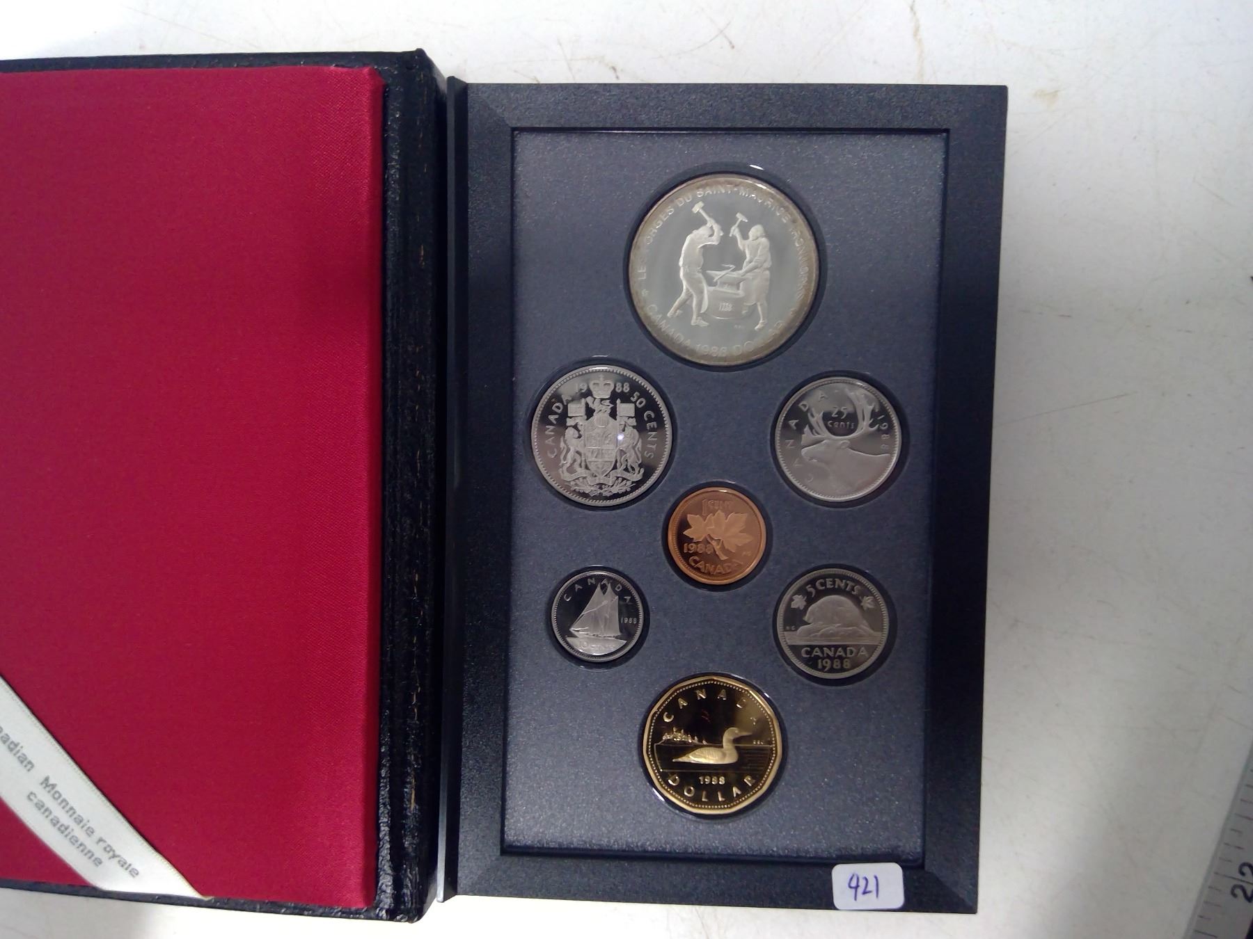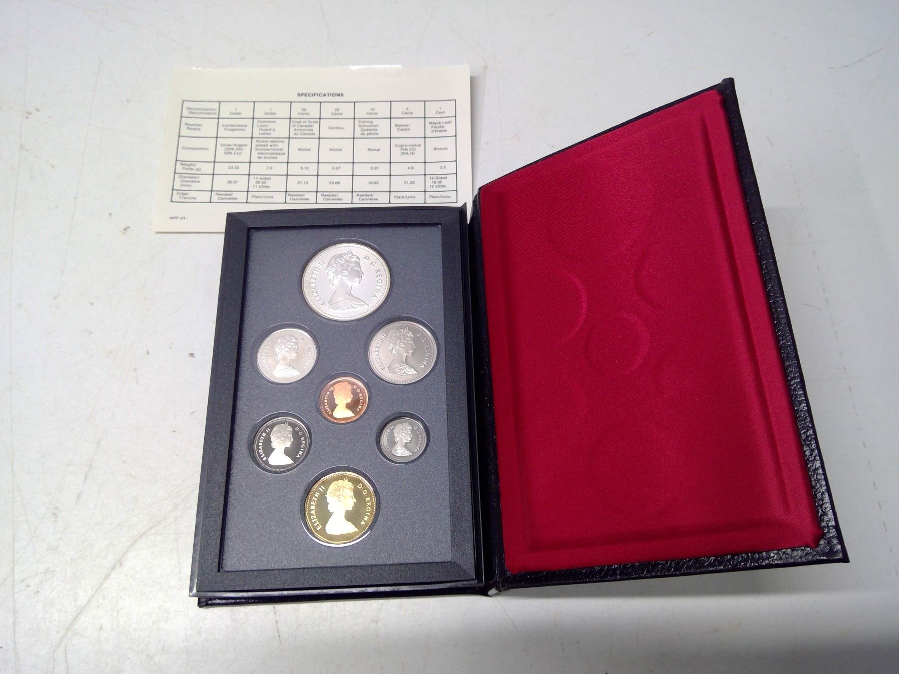 1988 Proof Set. 7-coin set includes Silver Dollar that commemorates the first heavy industry in Canada. Proof with Ultra Heavy Cameos. Housed in its original Royal Canadian Mint case of issue. Includes Certificate of Authenticity.