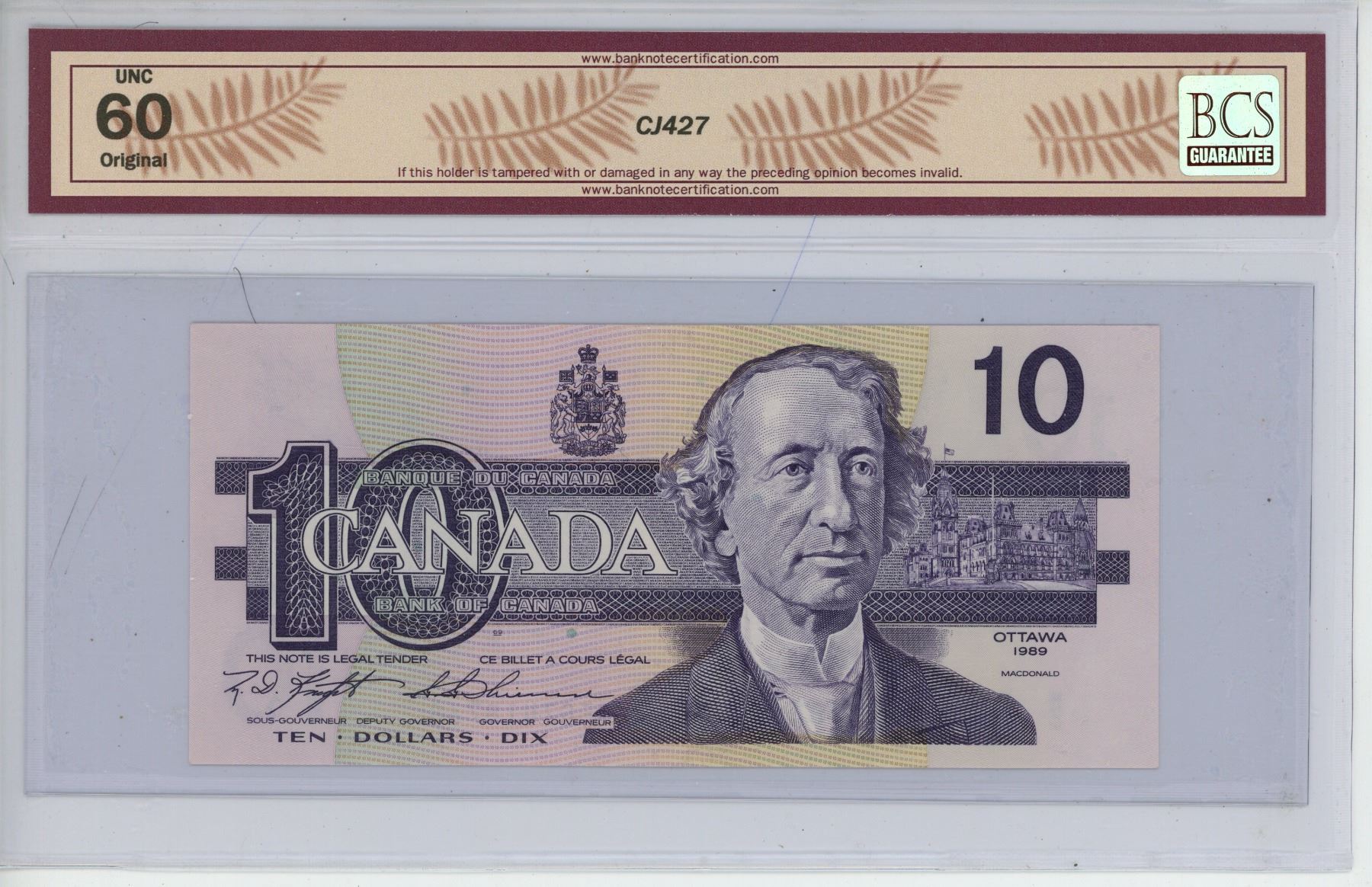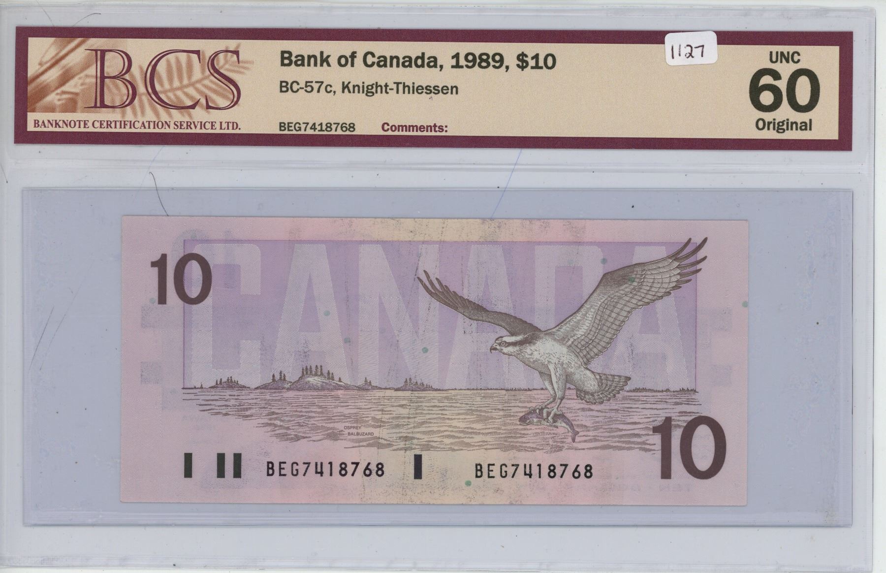 1989 BC-57c 10 dollar, Knight-Thiessen, BEG7418768 UNC-60 Original
