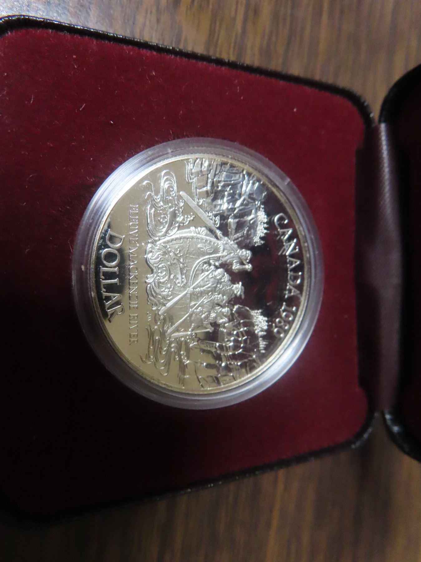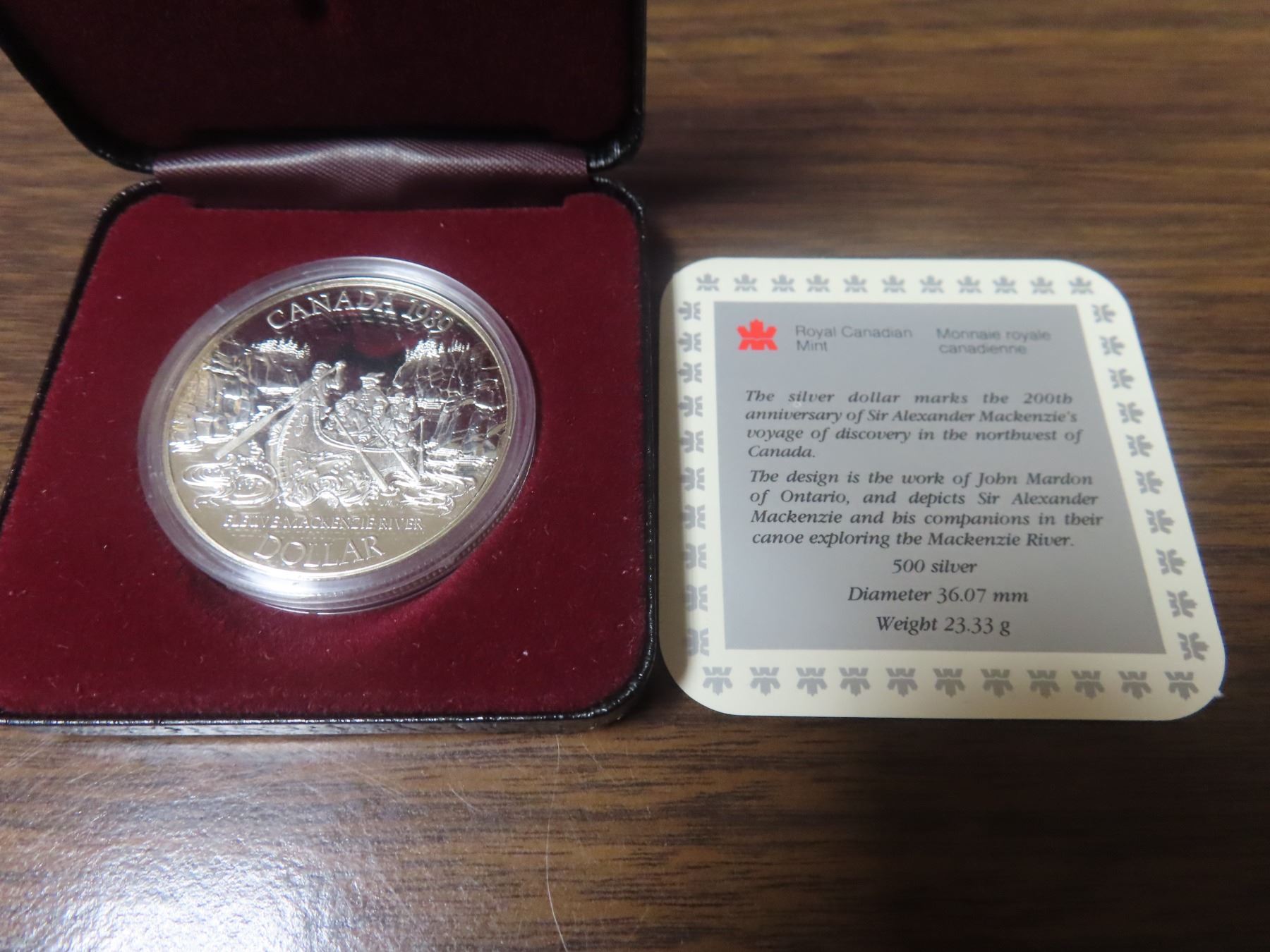 1989 Proof Silver Dollar. Commemorates the 200th Anniversary of Hudson’s Bay Company fur trader Alexander Mackenzie’s journey down the Mackenzie River to the Arctic Ocean. Proof with Ultra Heavy Cameo. Housed in its original Royal Canadian Mint case of issue. Includes Certificate of Authenticity.