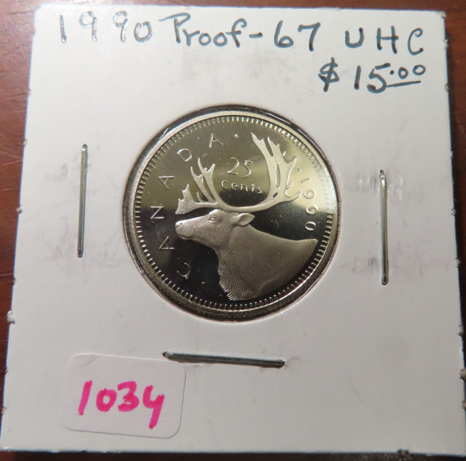 1990 Canadian 25 Cents. Proof with Ultra Heavy Cameo. Bright White.