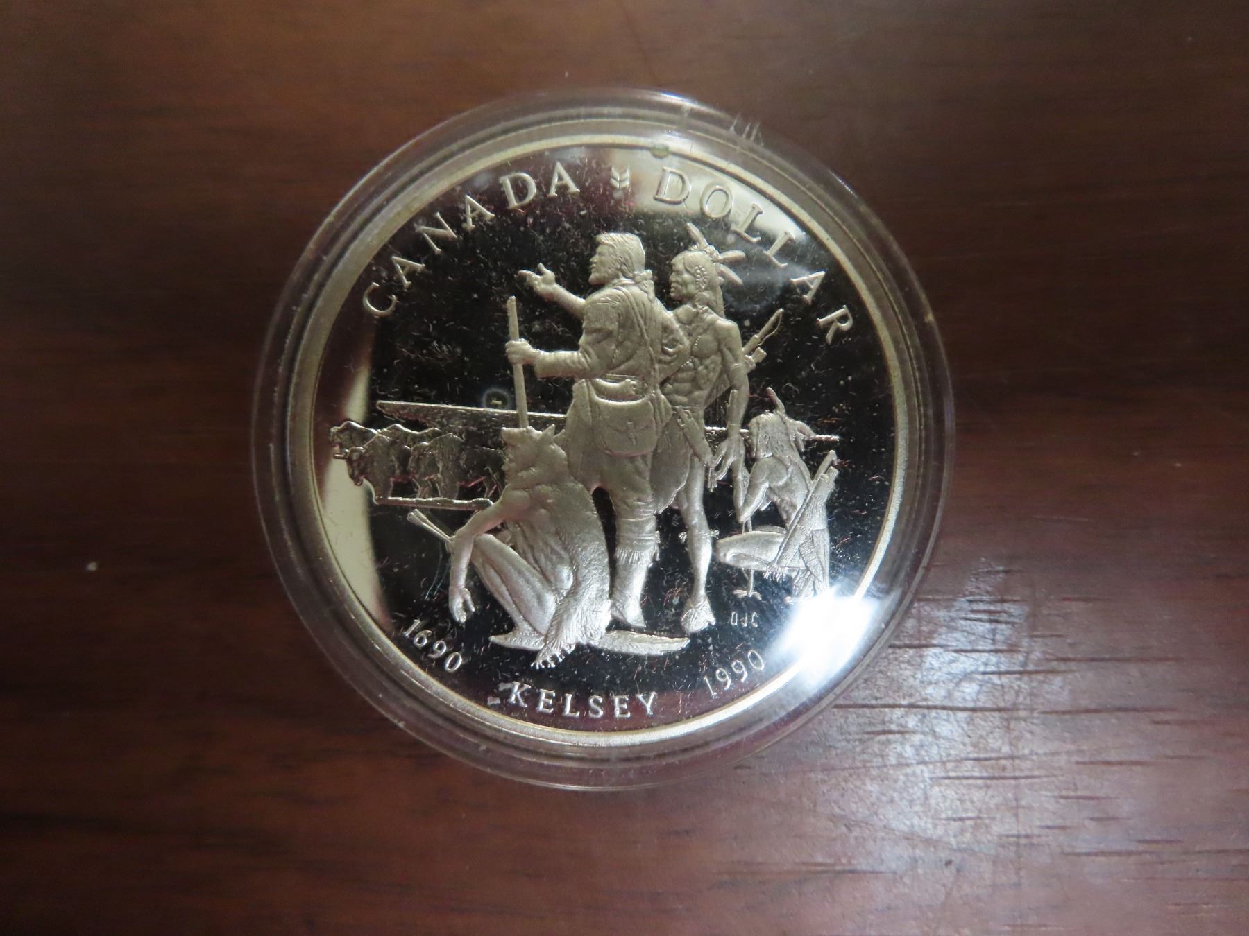 1990 Henry Kelsey Silver Dollar. 300th Anniversary of the famous Hudson’s Bay Company fur trader who explored much of the Canadian West. Proof with Ultra Heavy Cameo. Housed in its original Royal Canadian Mint case of issue.