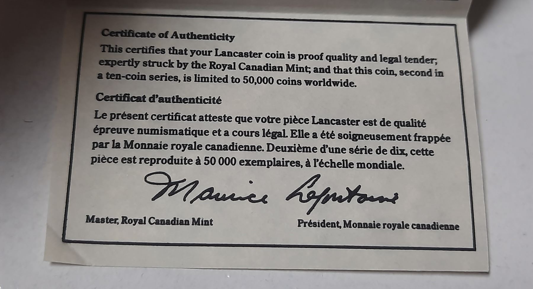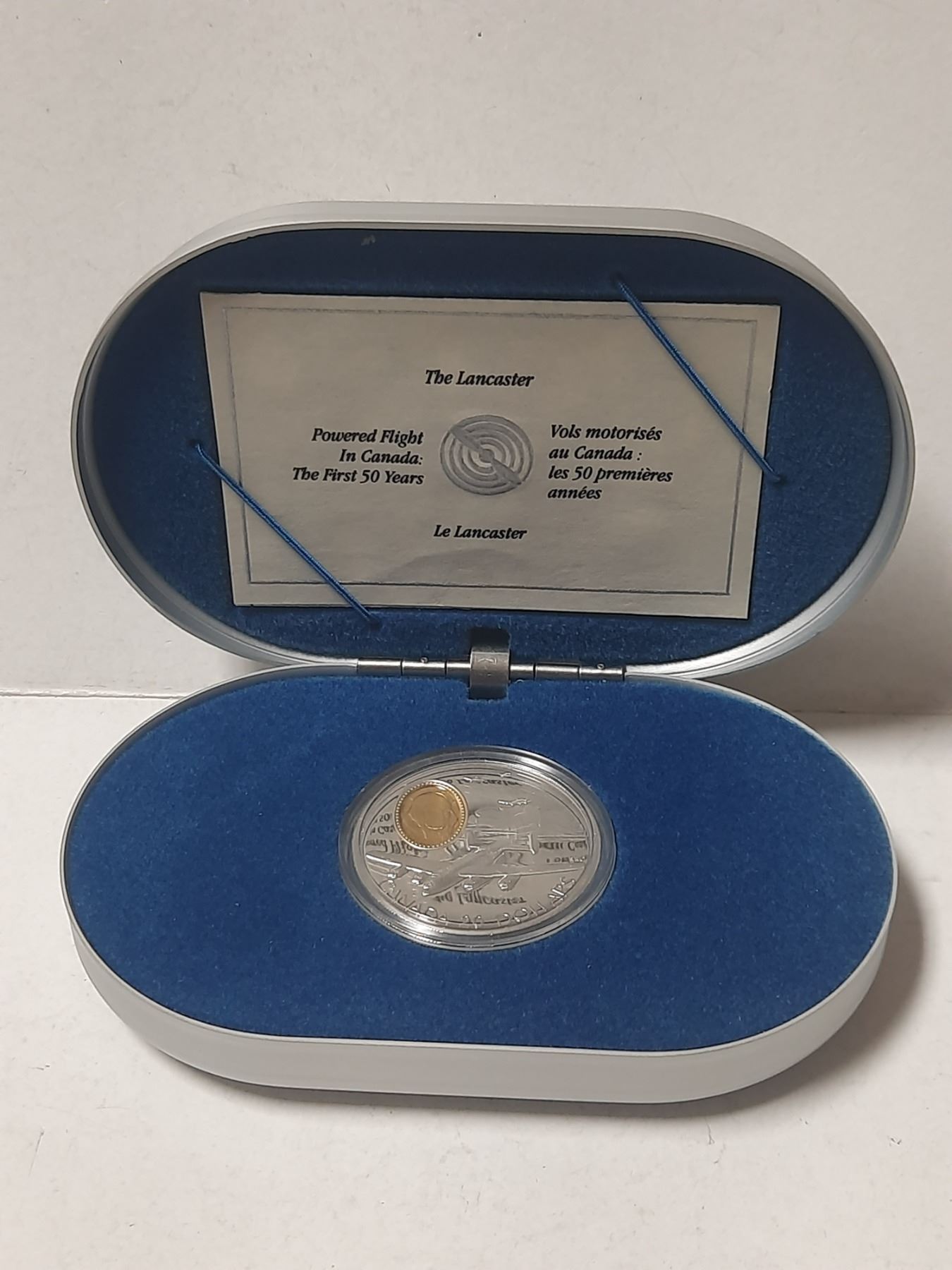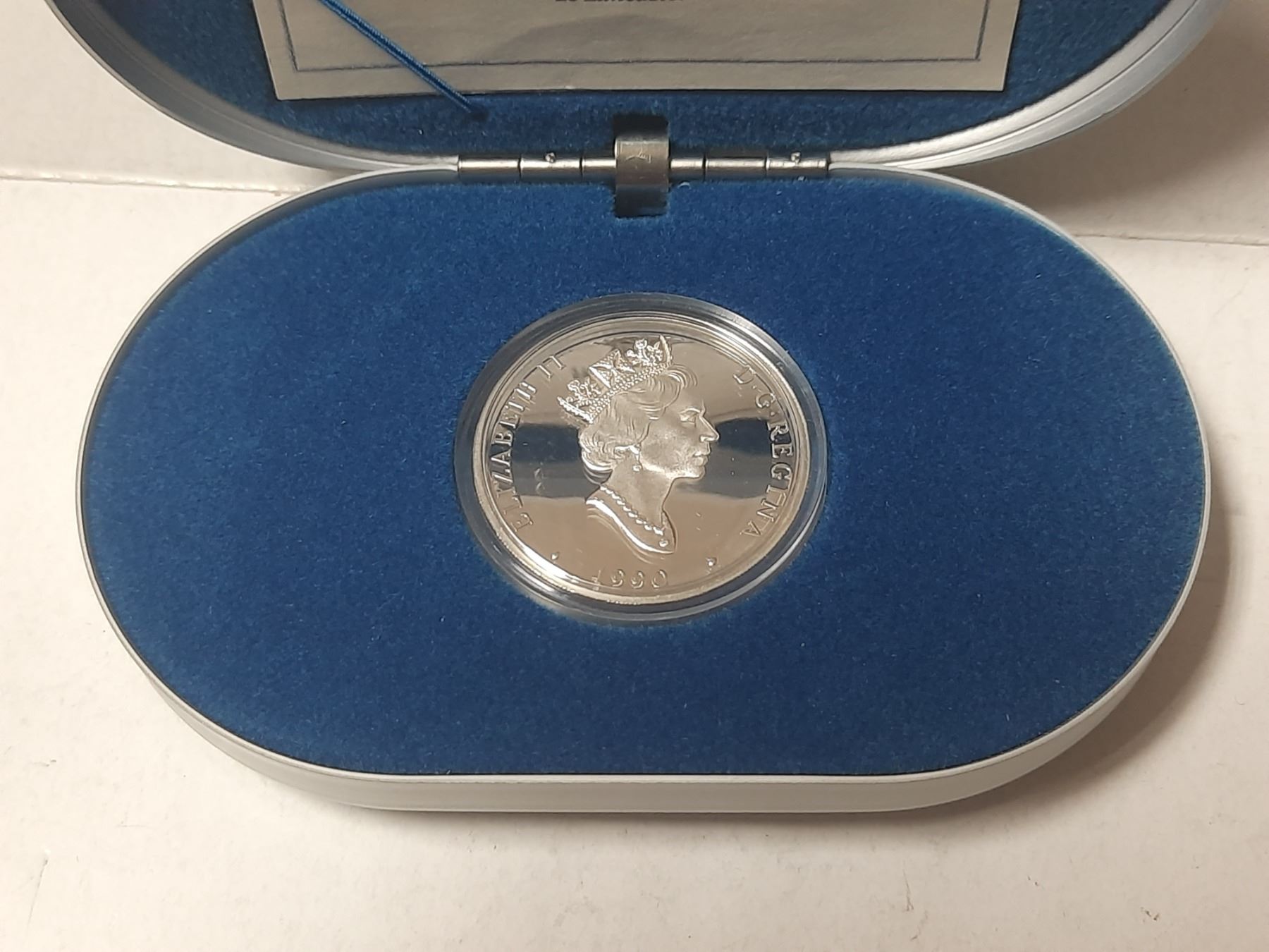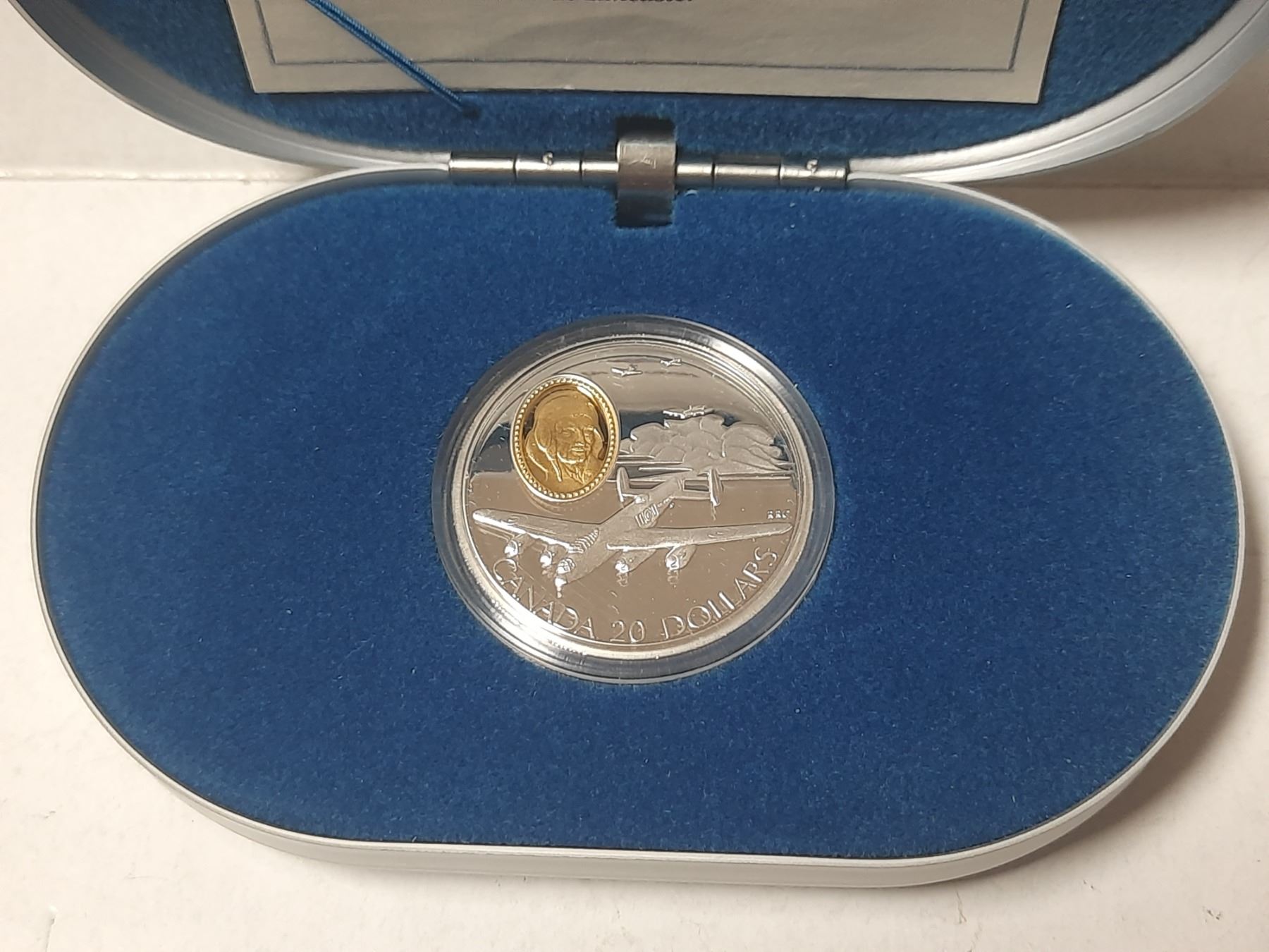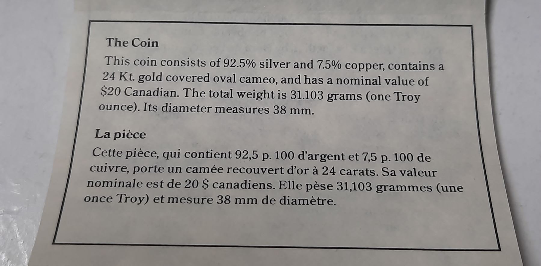 1990 Twenty dollar Lancaster- One oz. 92.5 silver coin. 24KT gold covered oval cameo