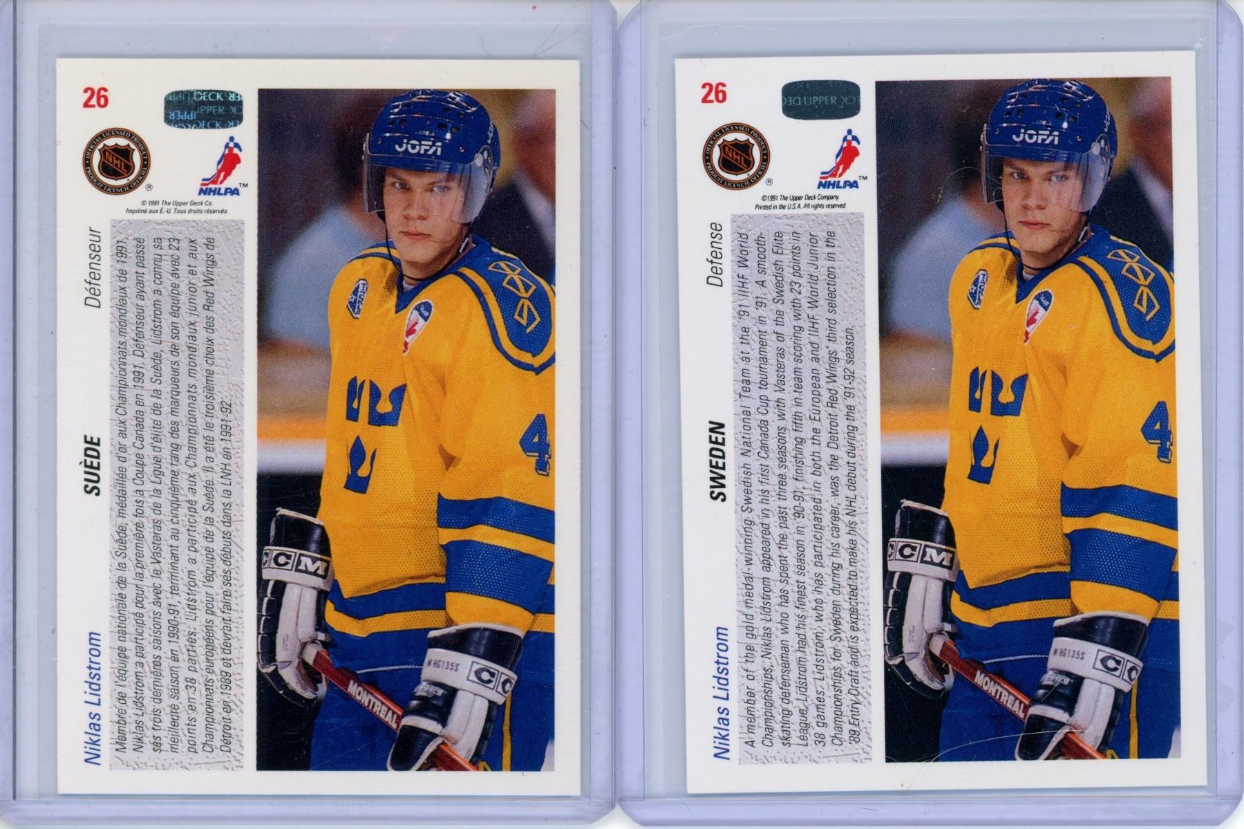 1991-1992 Upper Deck Lidstrom rookie cards (Eng & Fr)