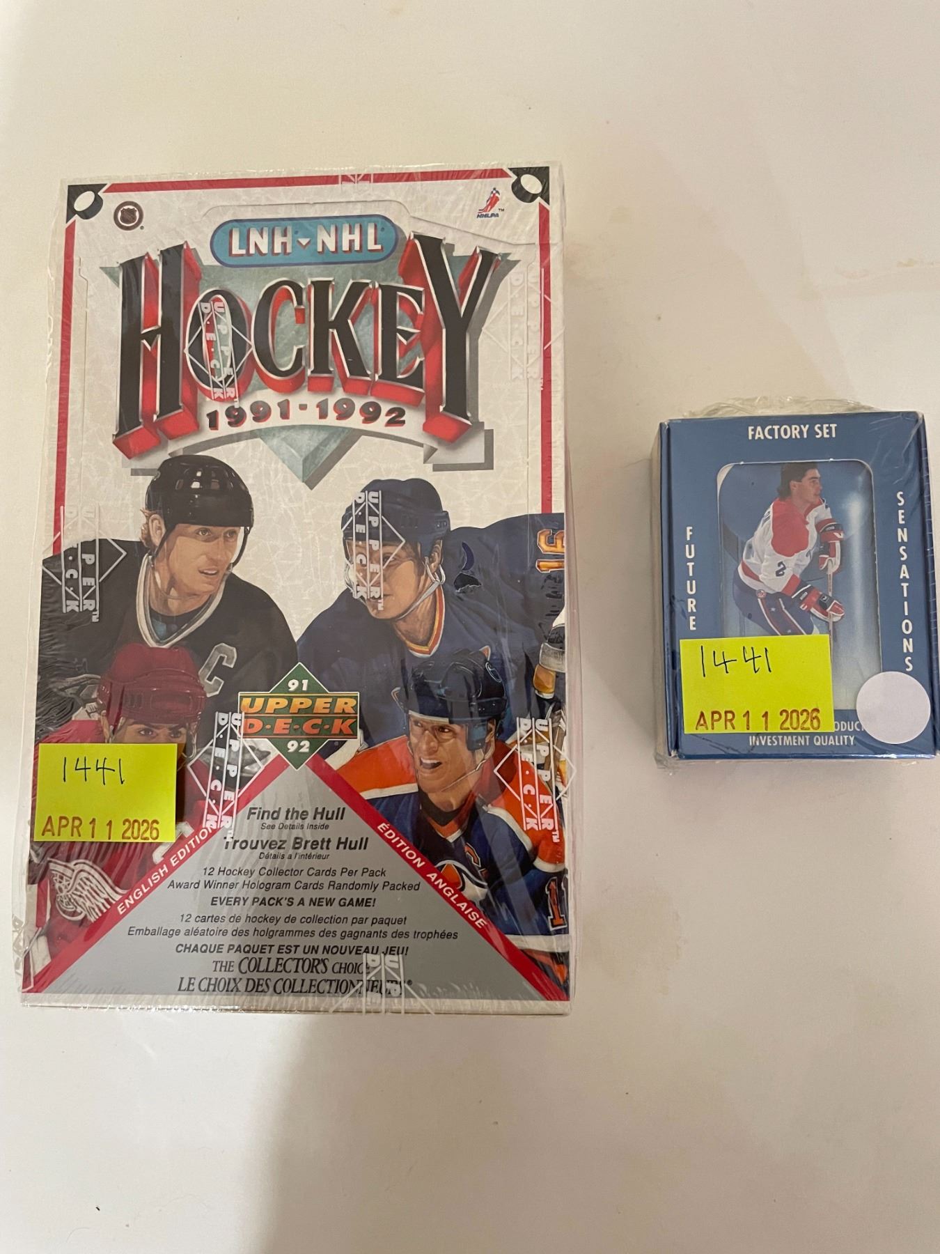 1991-92 box of upper deck hockey cards english edition and box of 1991 premier edition factory set hockey cards