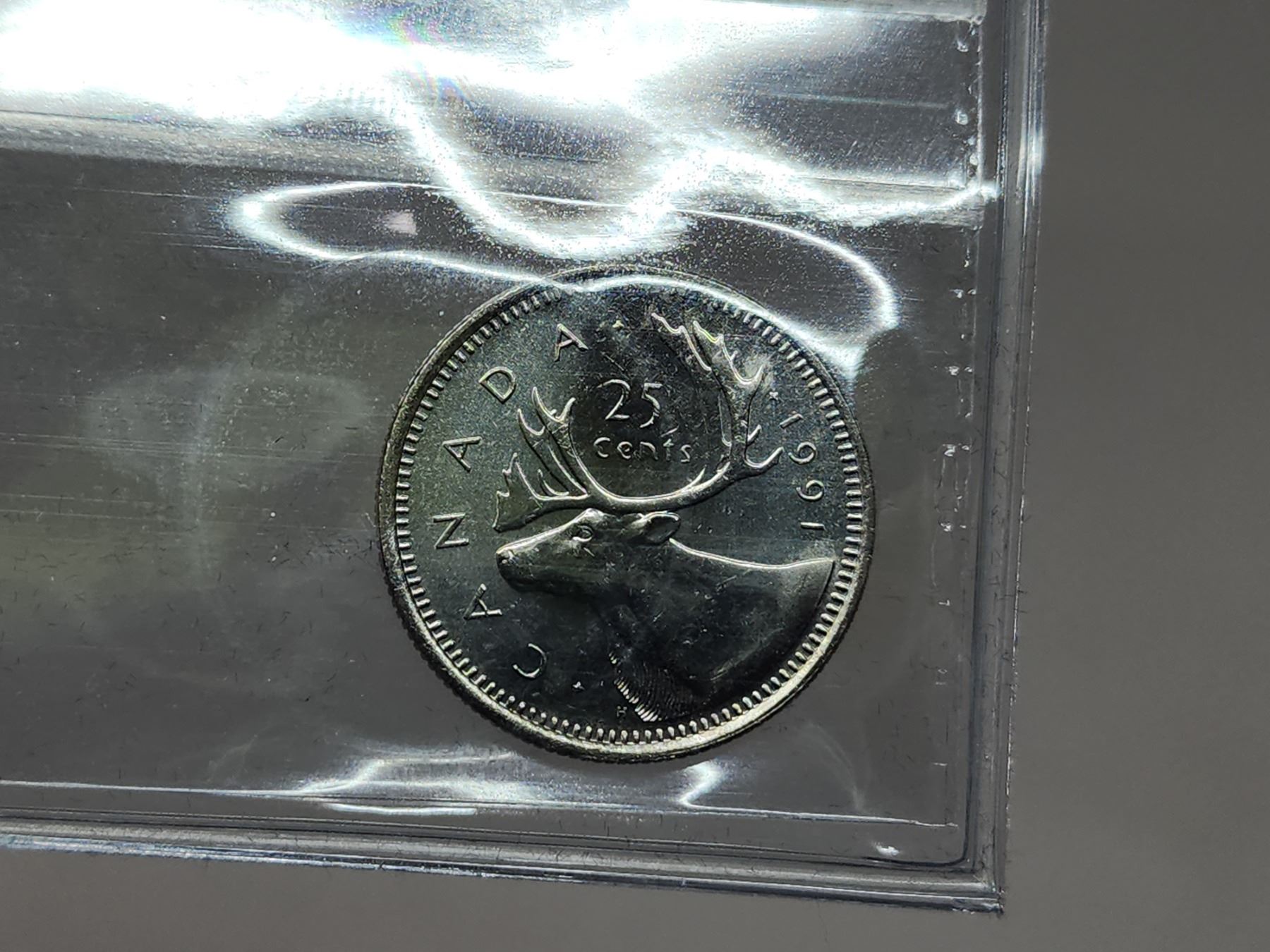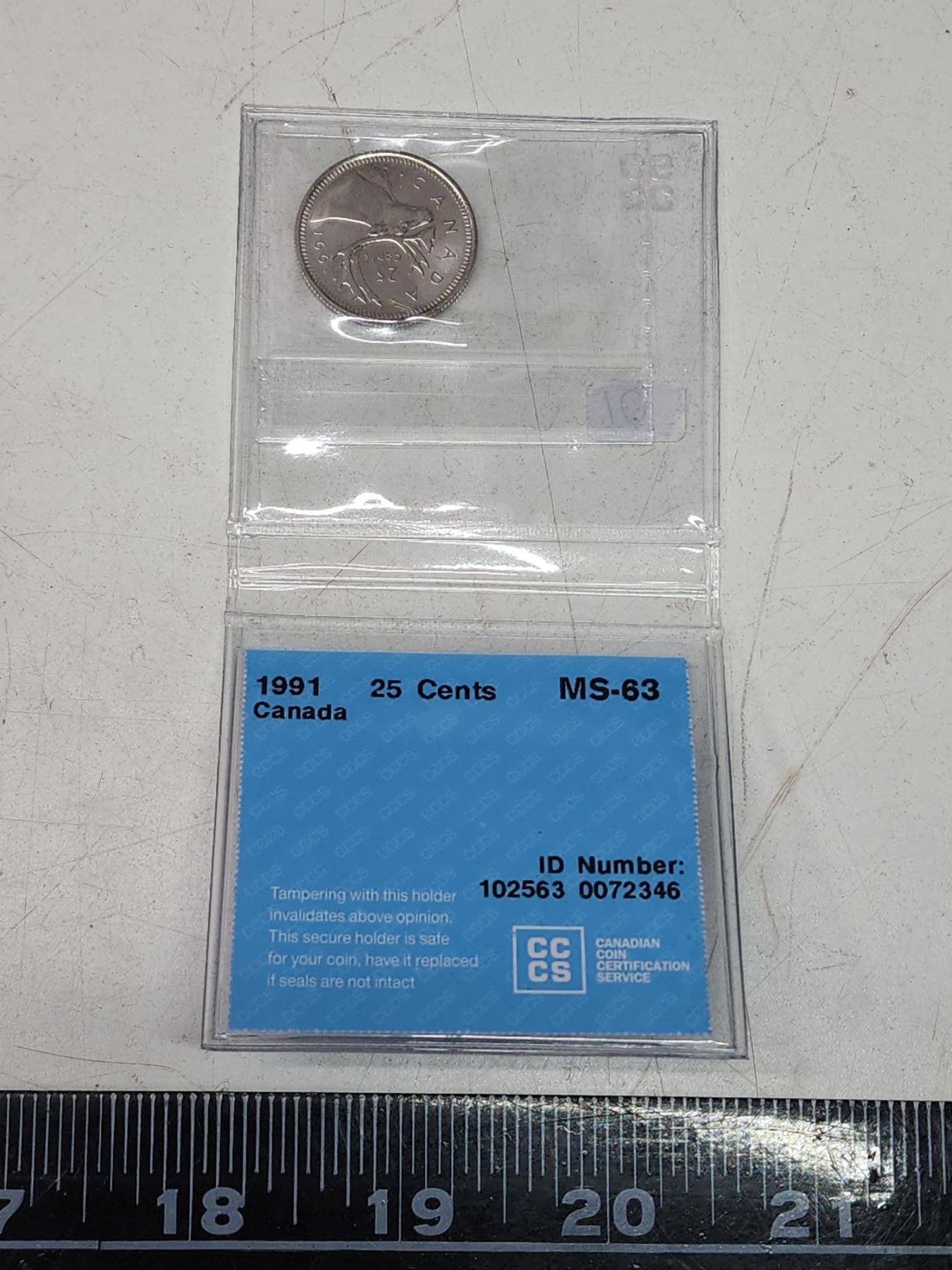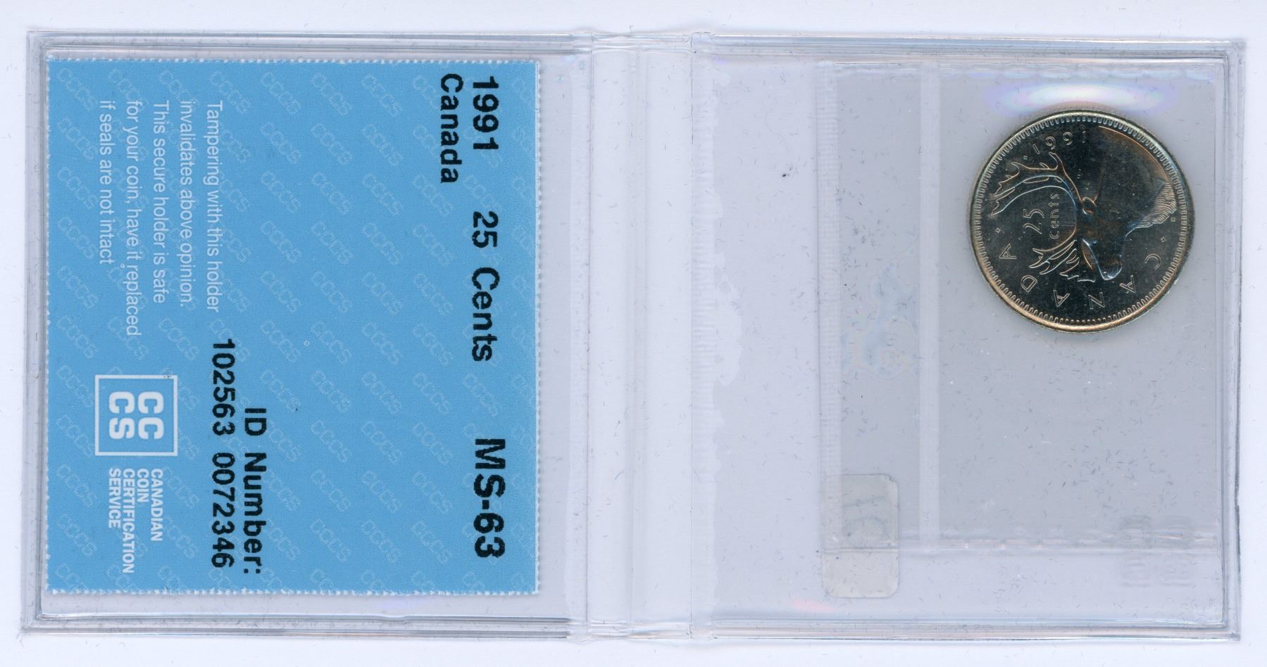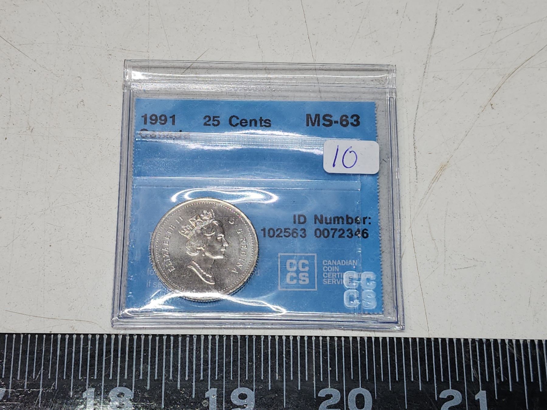 1991 CCCS graded. Canadian 25 cent coin - MS 63
