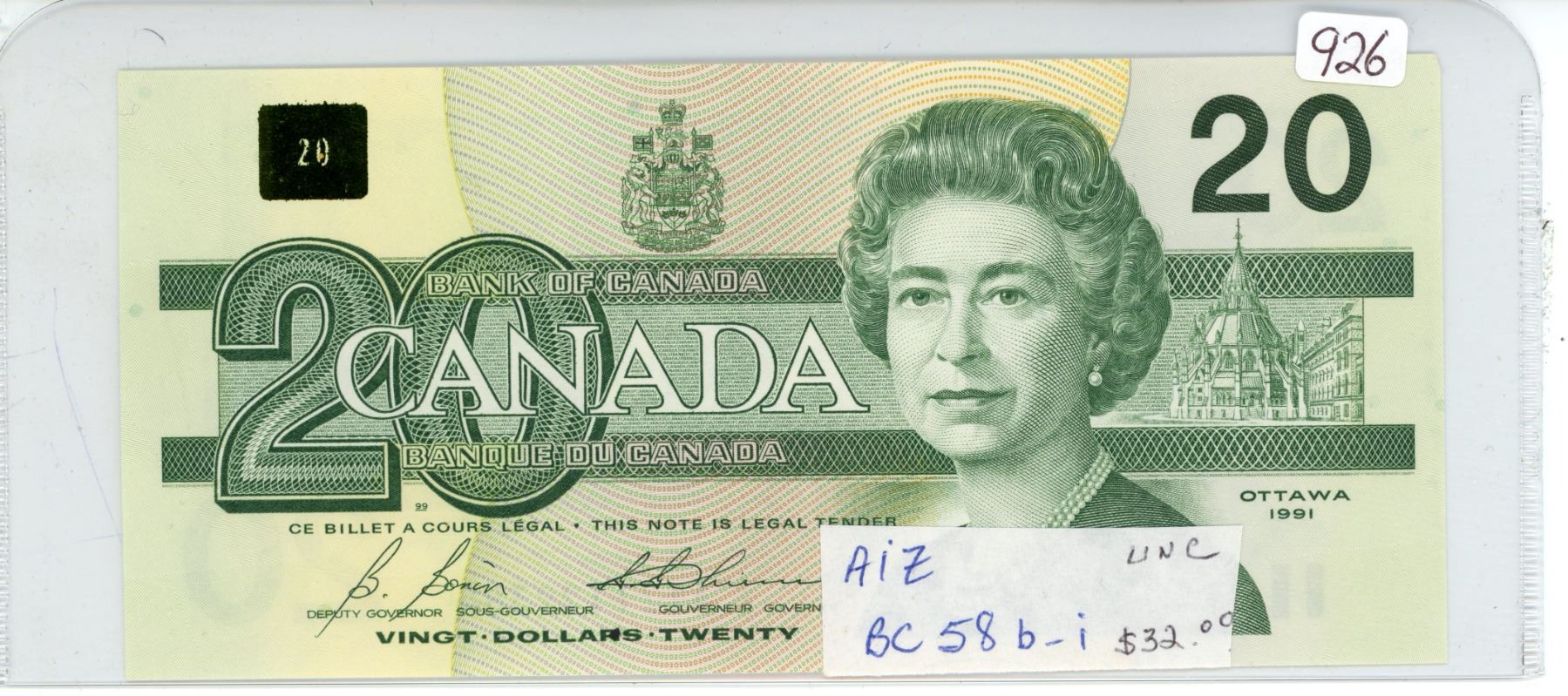 1991 Canadian 20 dollar bill - Bonin/Thiessen - AIZ 1129384