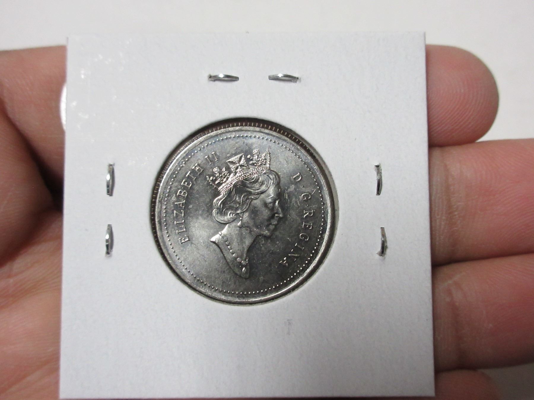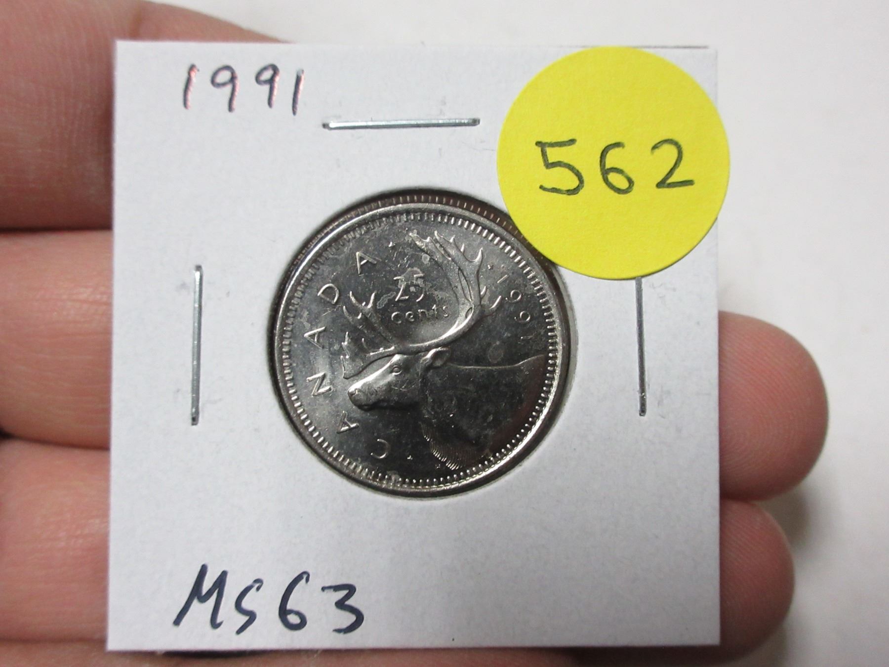 1991 Canadian 25 Cents. Mintage of only 459,000. MS63. Scarce.