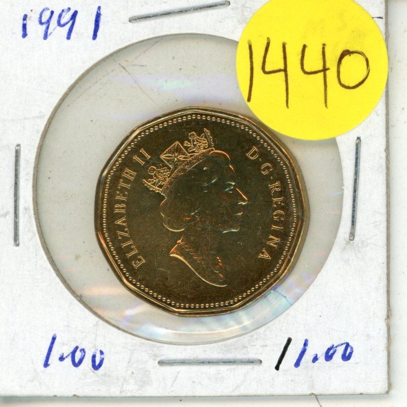 1991 Canadian One Dollar Coin. MS-64