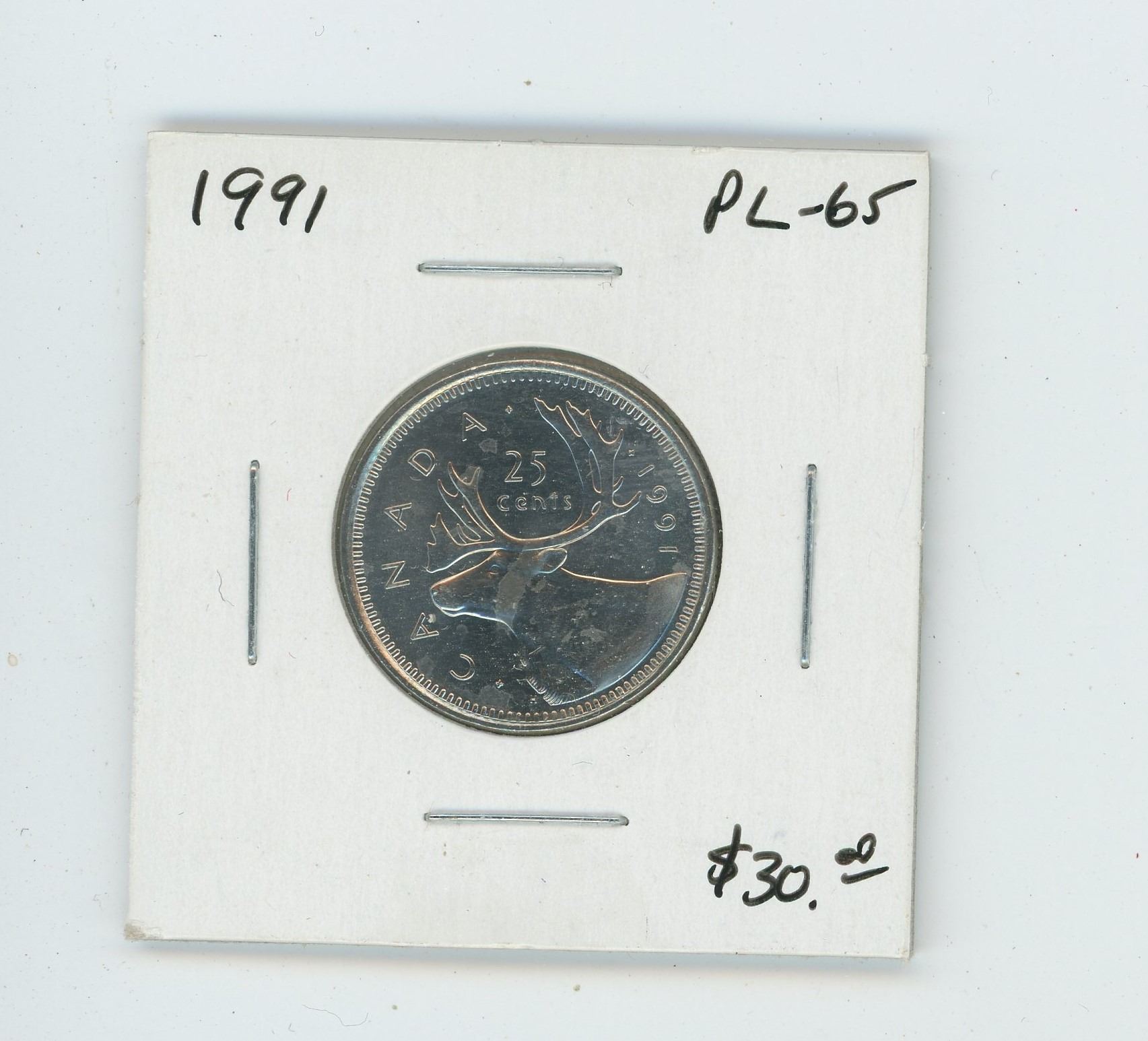 1991 Caribou 25 Cents. Proof Like-65. Scarce.