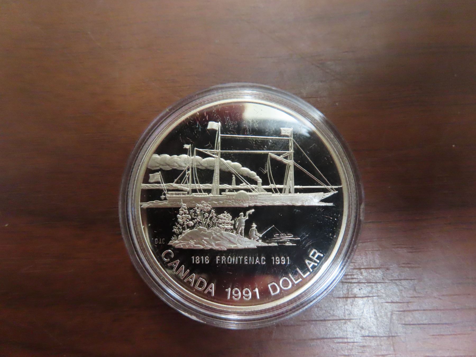 1991 Frontenac Silver Dollar. 175th Anniversary of this famous ship. Proof with Ultra Heavy Cameo. Housed in its original Royal Canadian Mint case of issue.