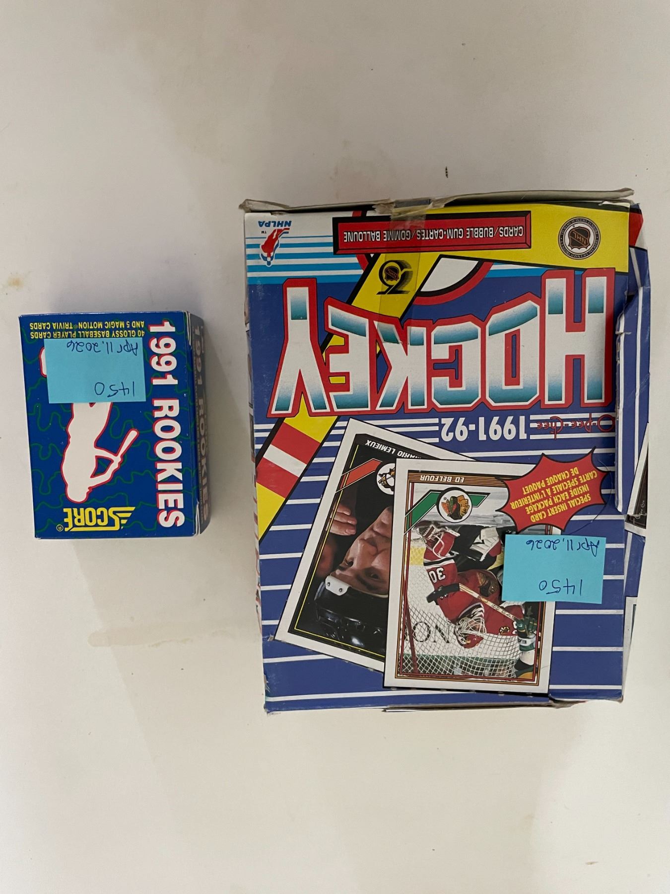1991 O-PEE-CHEE box of hockey cards unopened and 1991 score box of 40 baseball cards