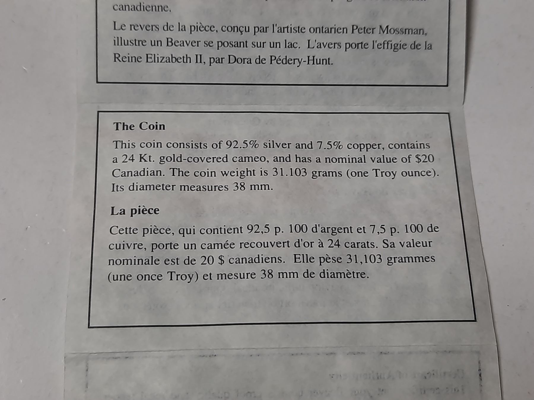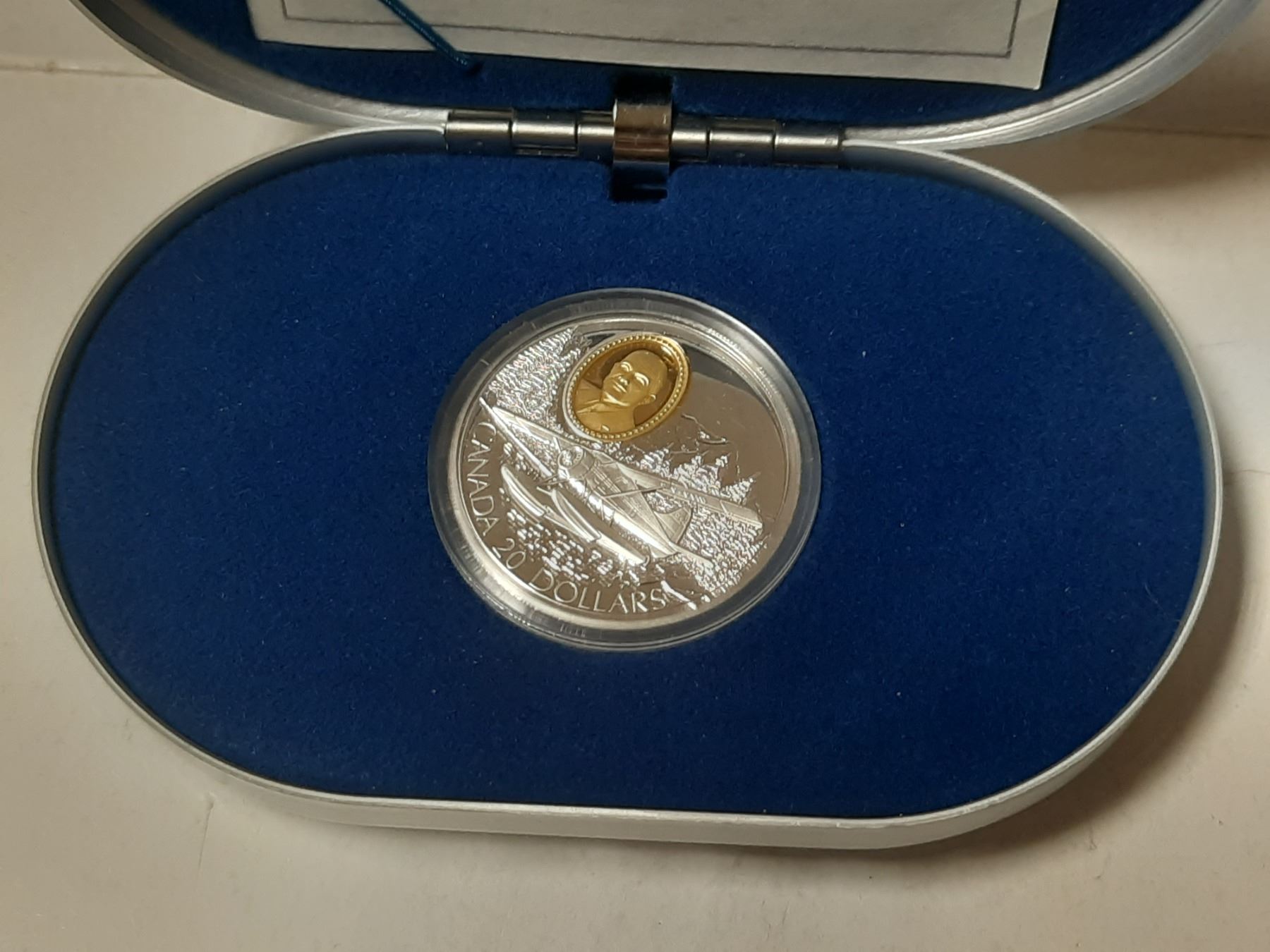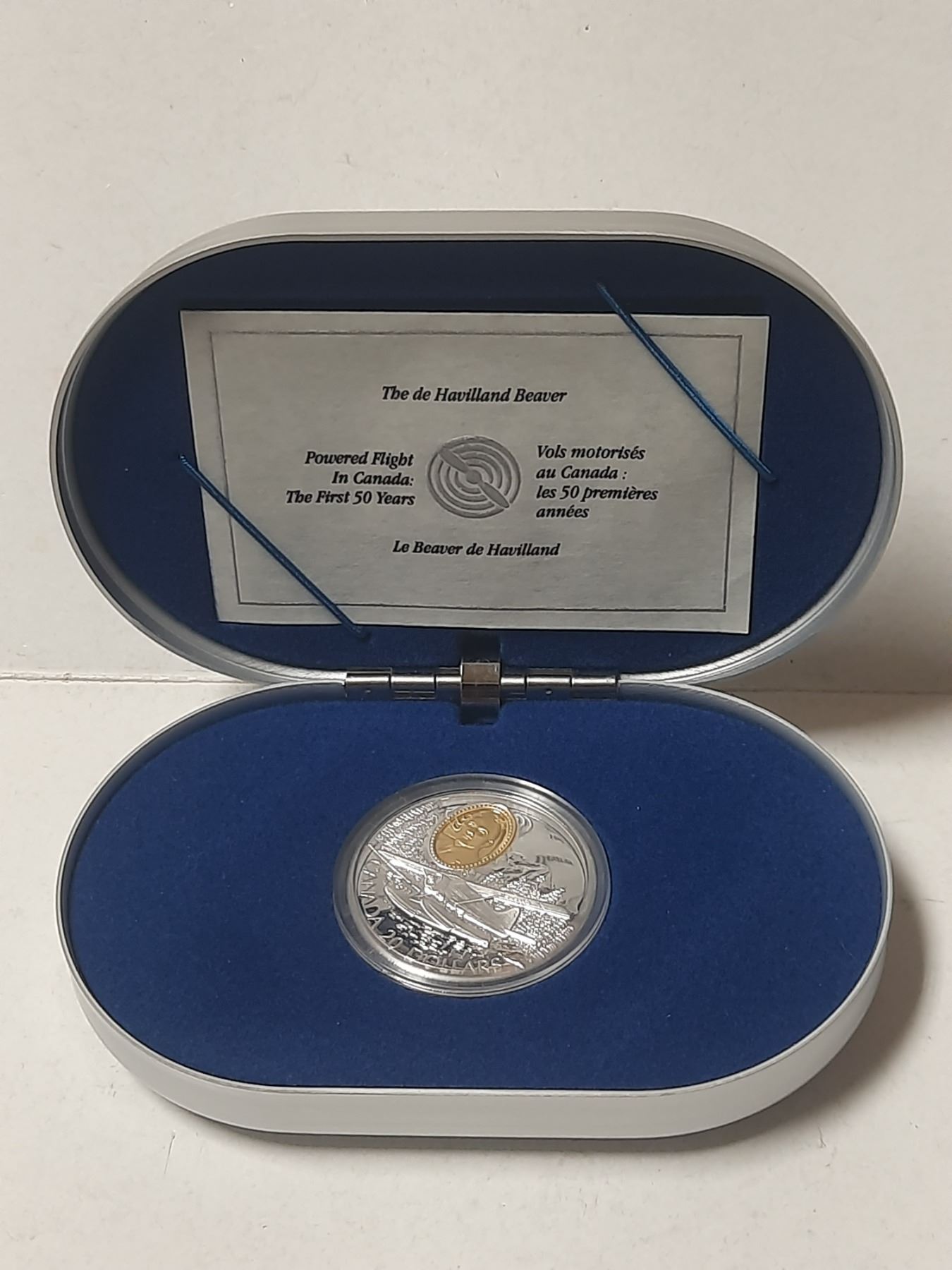 1991 Twenty dollar The de Havilland Beaver- One oz. 92.5 silver coin. 24KT gold covered cameo