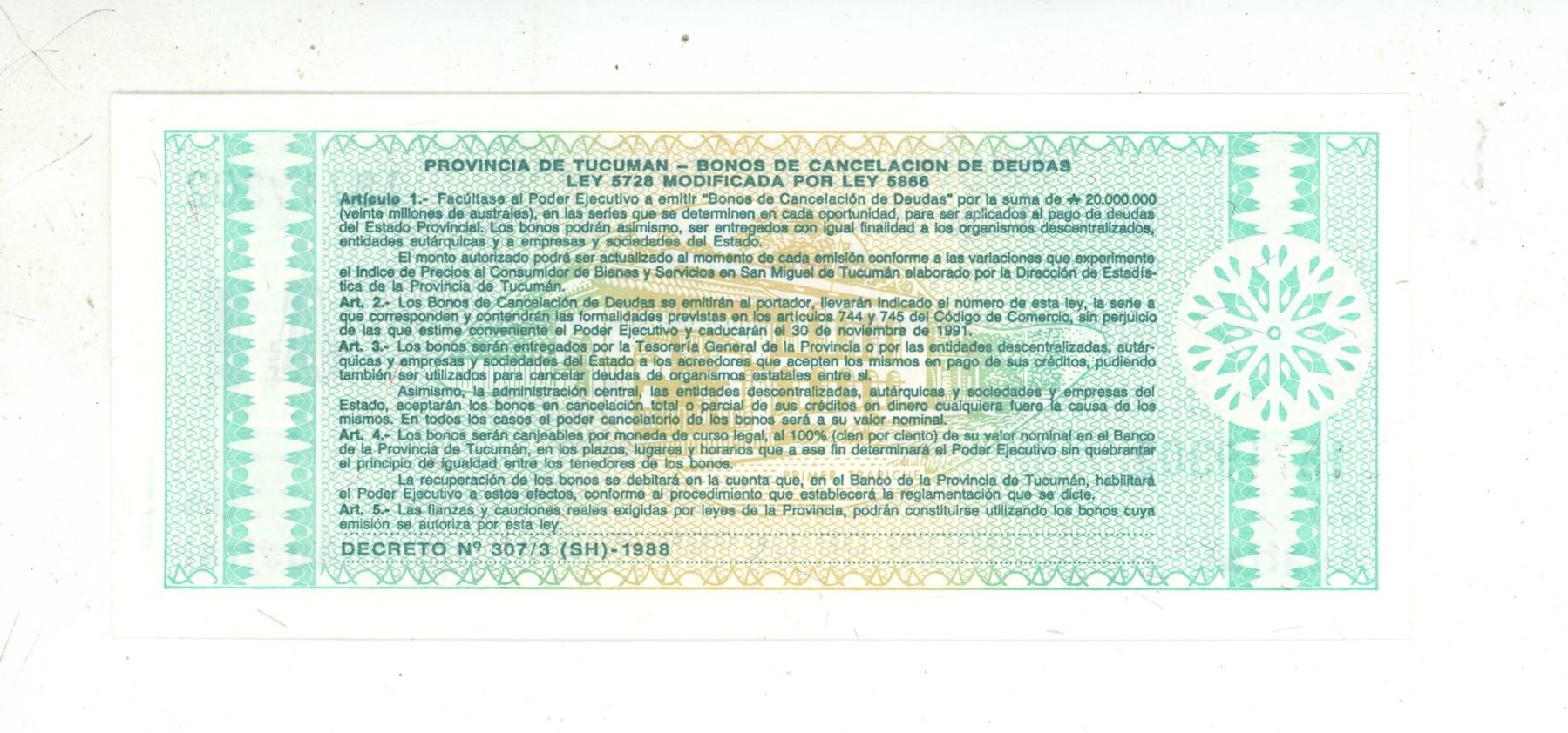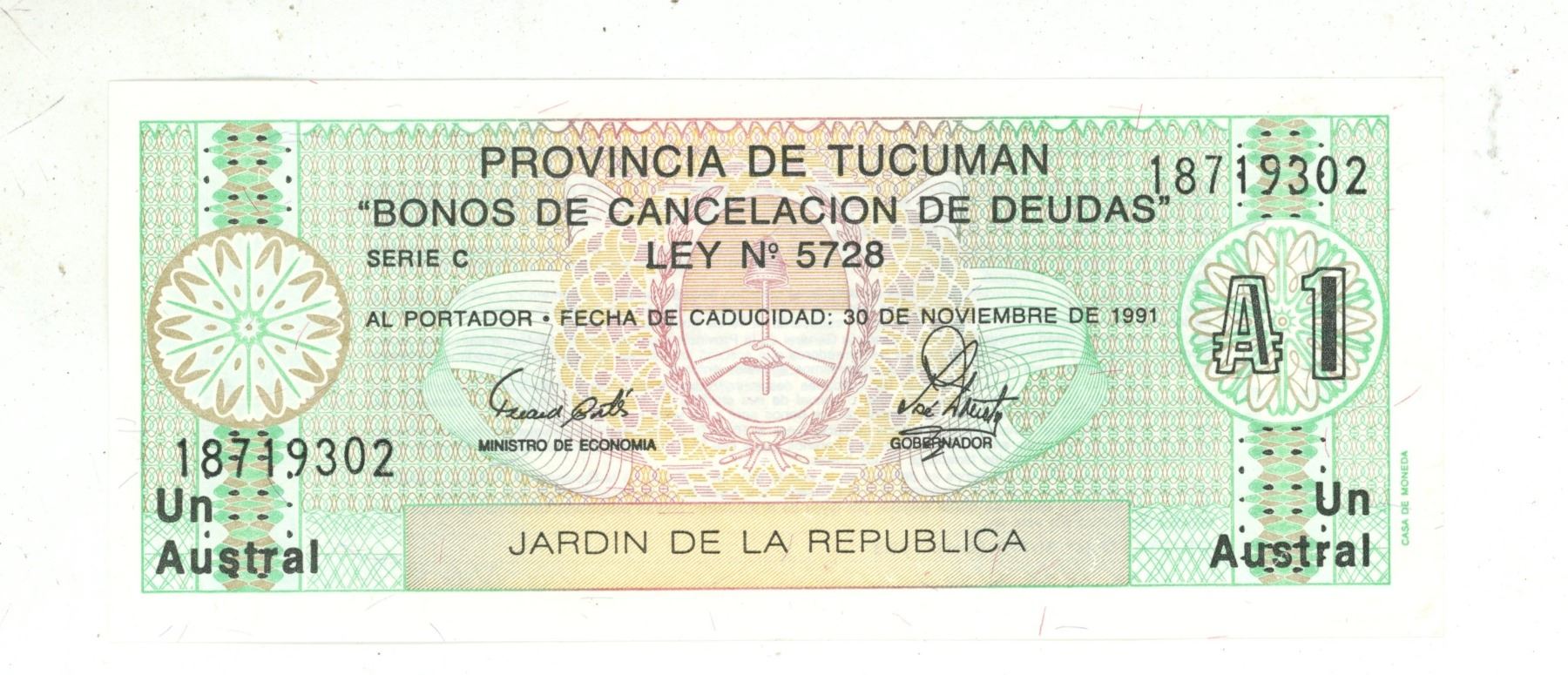 1991 argentina tucuman province one 1 austral dept cancelation bond