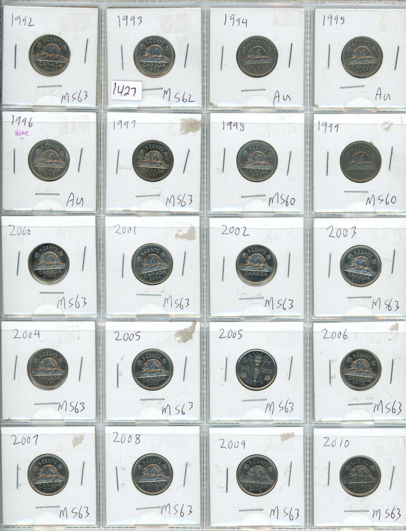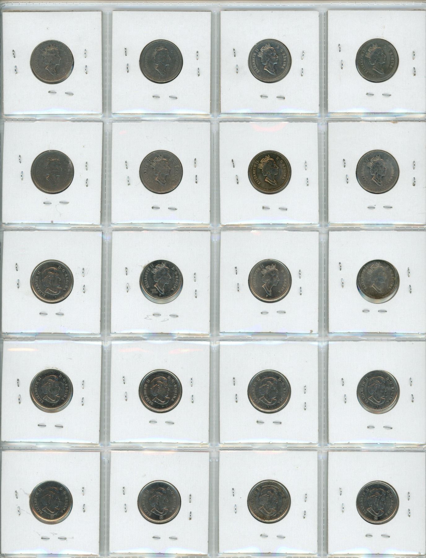 1992-2010 Canadian 5 Cent Coins X20