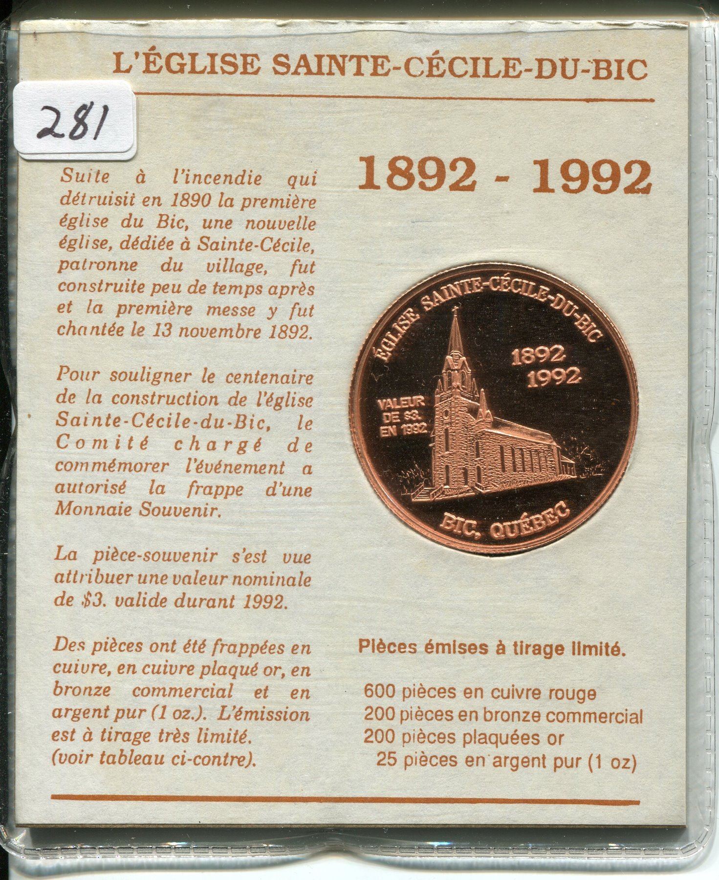 1992 BRONZE COIN (LAC ILES DU BIC, QUEBEC)