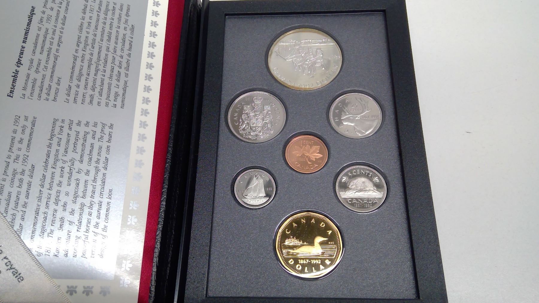 1992 Canada 7-coin Proof Set, Sterling Silver $1, COA