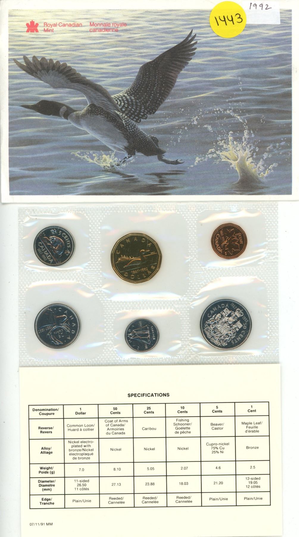 1992 Canadian Proof Like Set. Includes Scarce 1992 Caribou 25 Cents.