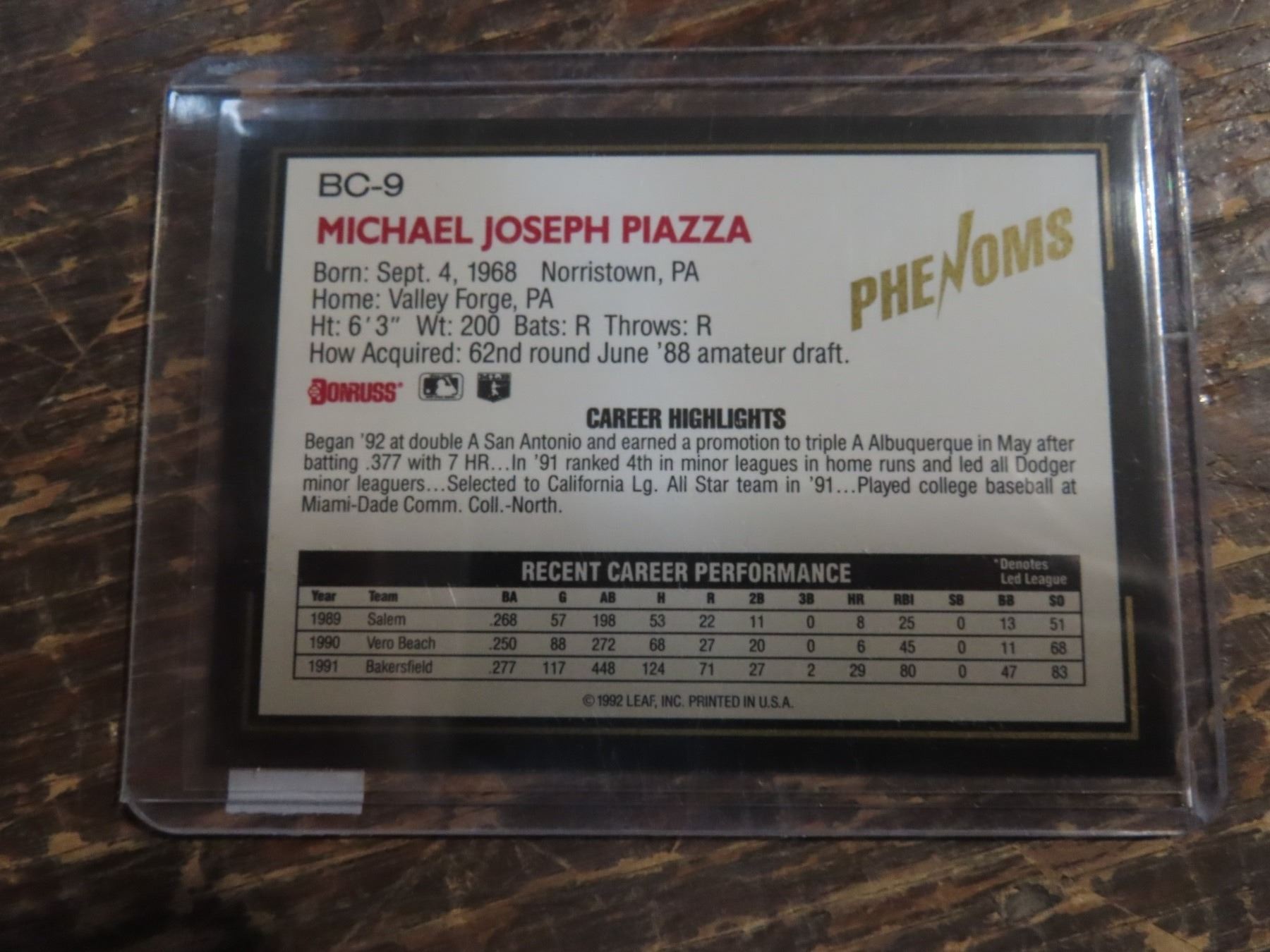 1992 Donruss The Rookies Phenoms Mike Piazza #BC-9 RC