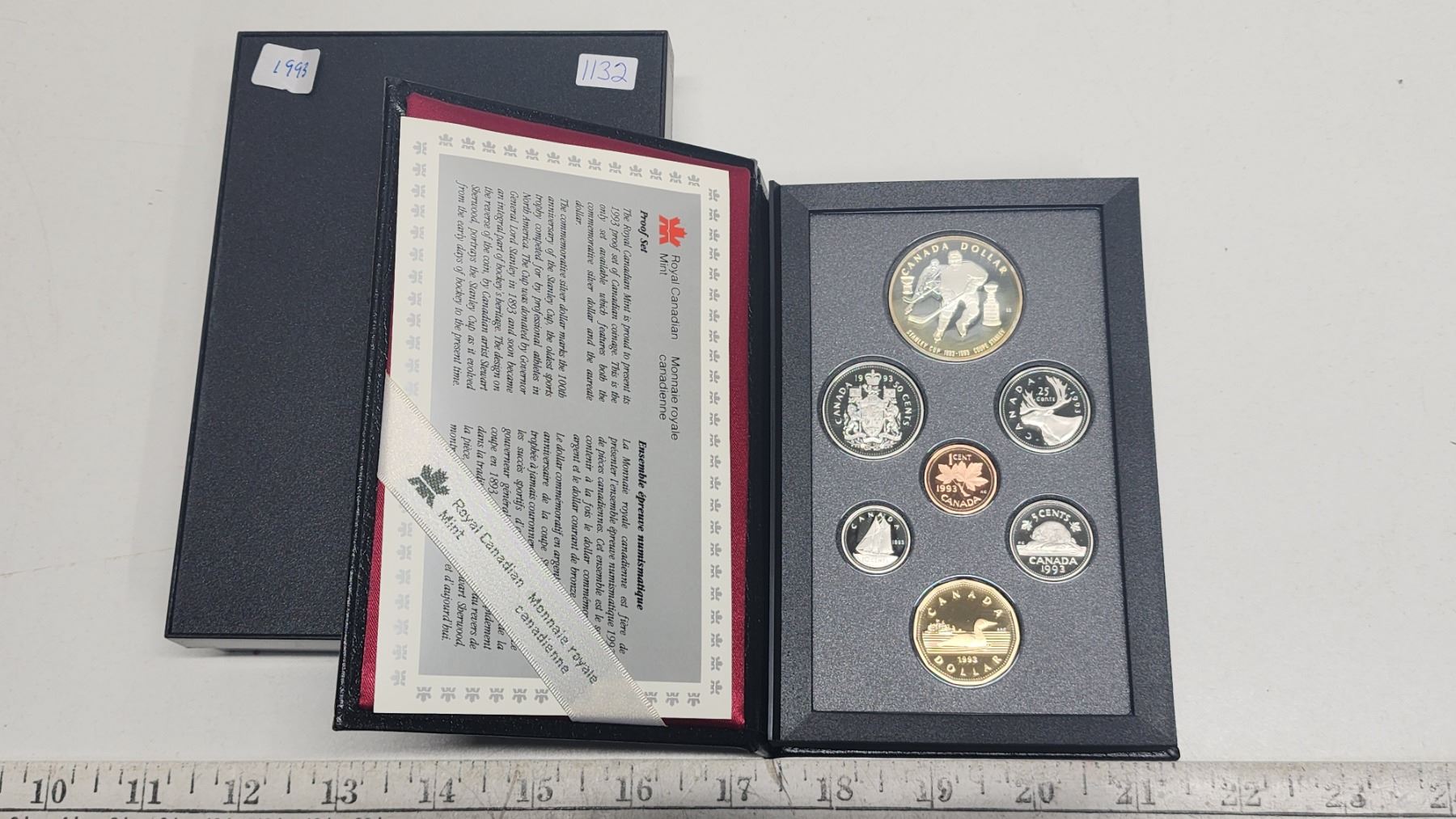 1993 Canadian coin proof set - 100th anniversary of the Stanley cup, 92.5% silver dollar
