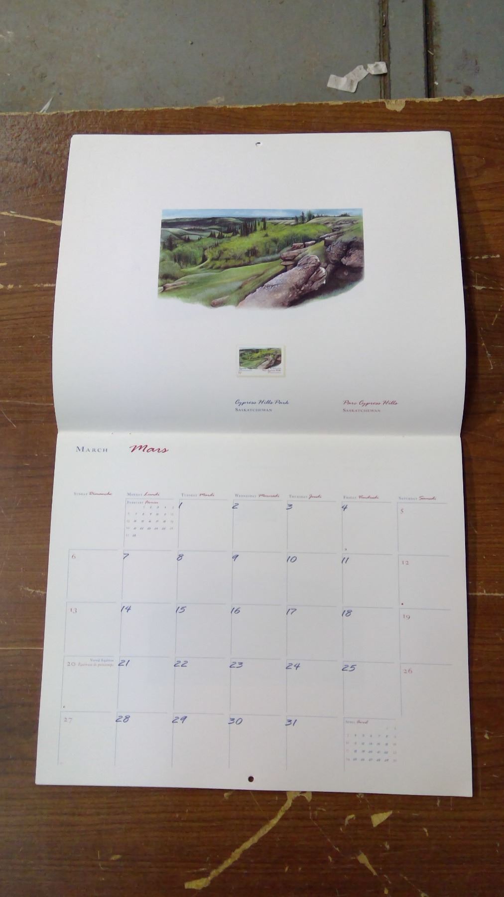 1994 CALENDAR WITH REPRODUCED STAMP FOR EACH PROVINCIAL AND TERRITORAL PARK IN CANDA ISSUED BY CANADA POST