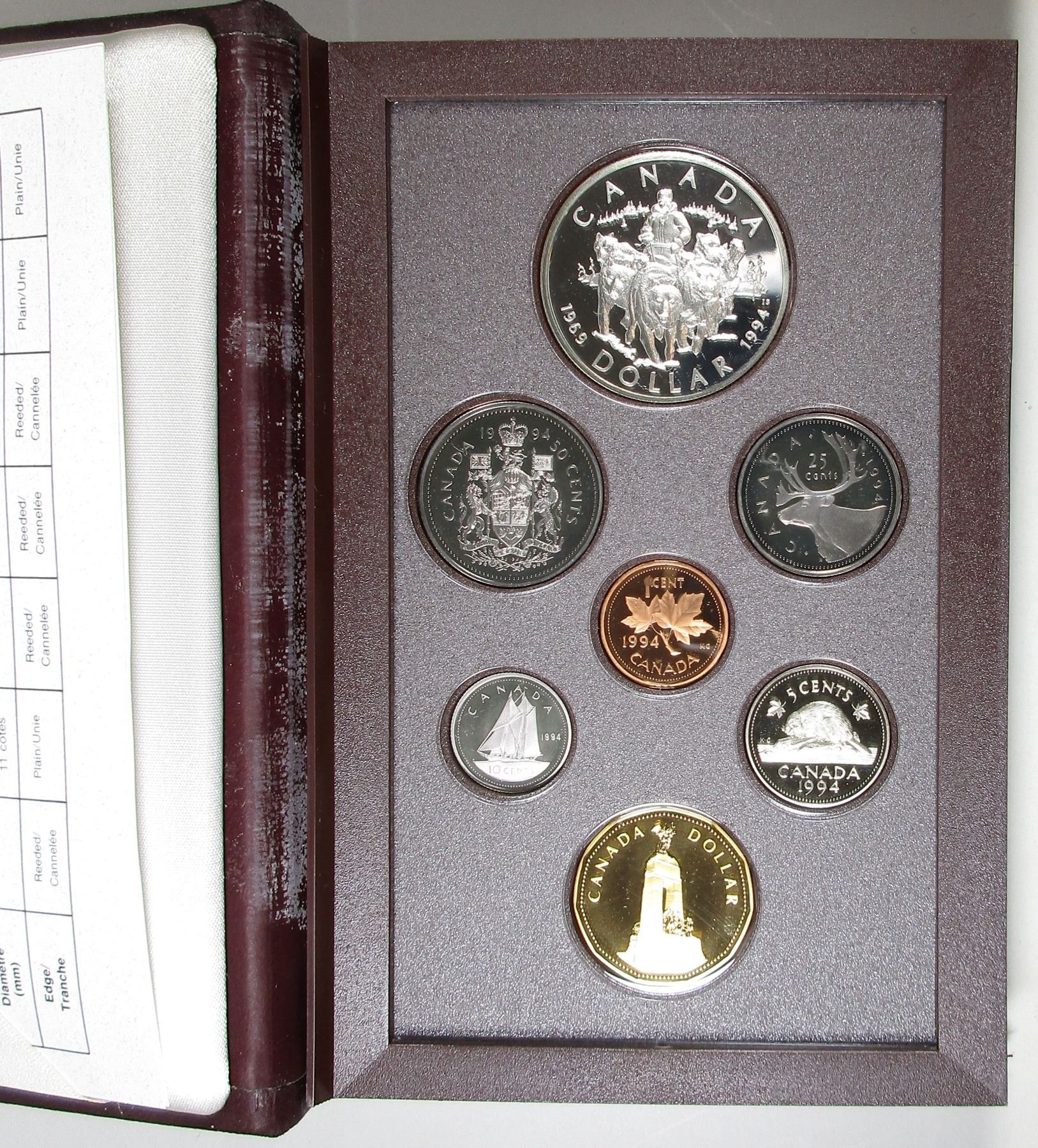 1994 Canada Prestige Special Edition (double dollar) Proof Set - Remembrance / Last RCMP Dog Team Patrol (burgundy case)