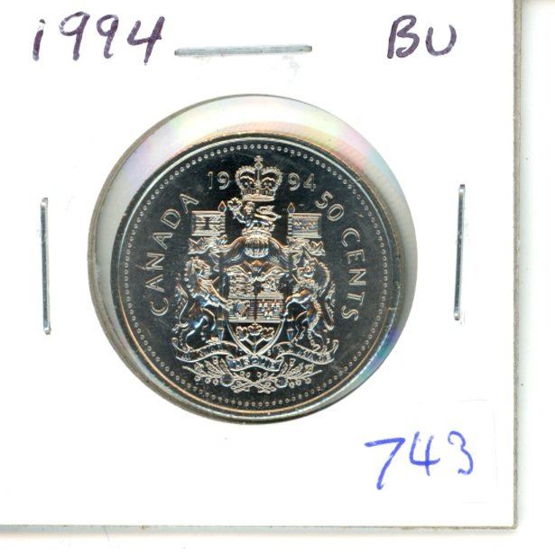 1994 Canadian Silver 50 Cents. Brilliant Uncirculated.