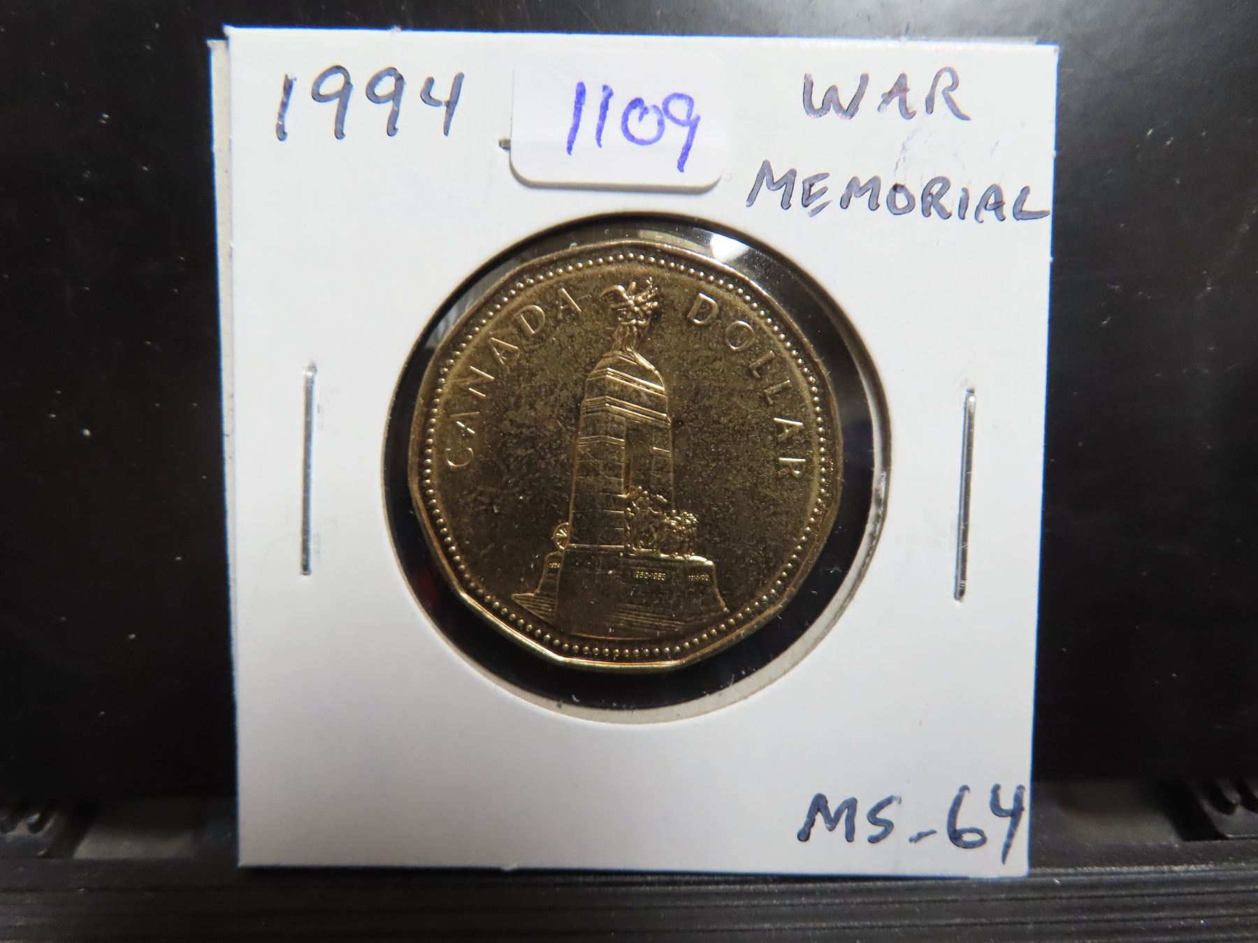 1994 National War Memorial Loonie Dollar. One Year Type. MS-64.
