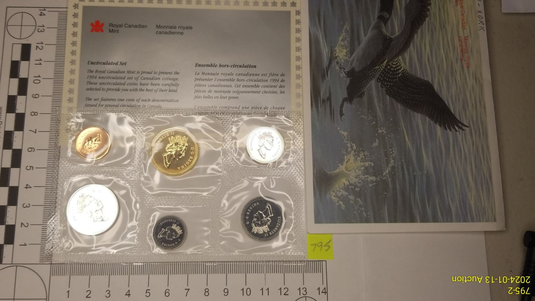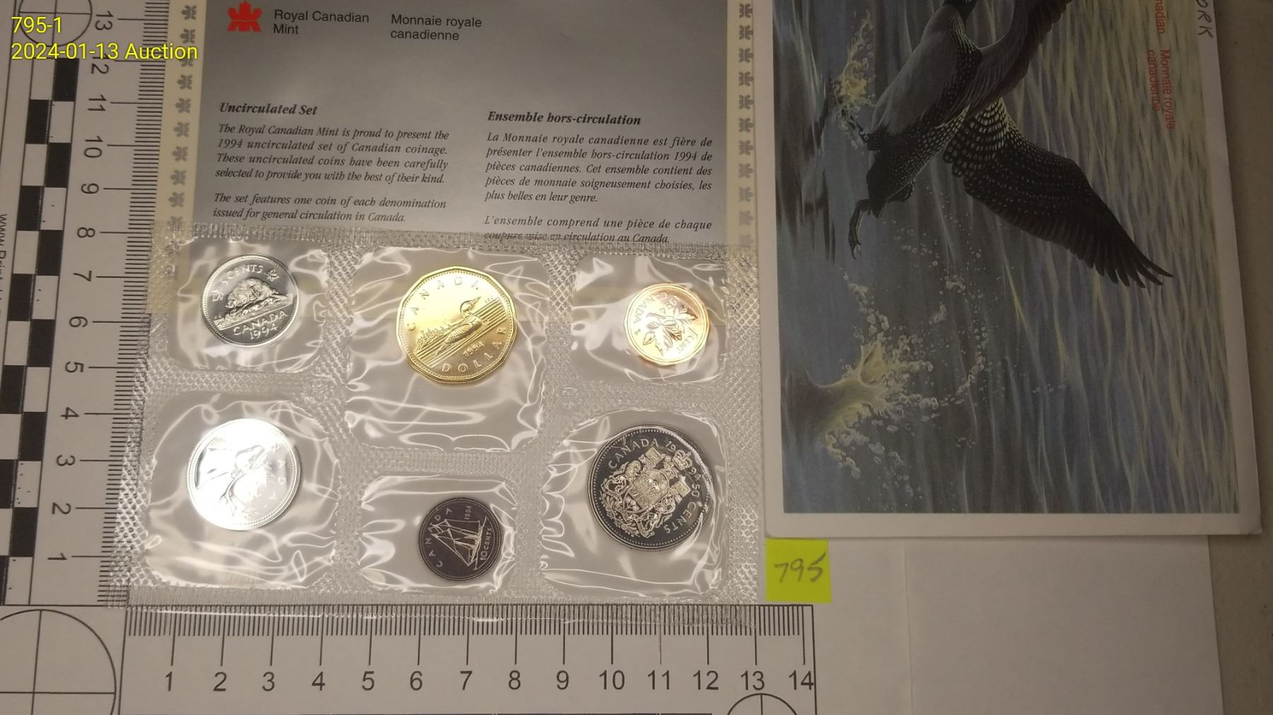 1994 Six Coins Loonie, Fifty Cent Piece, Quarter, Dime, Nickel, Penny Set