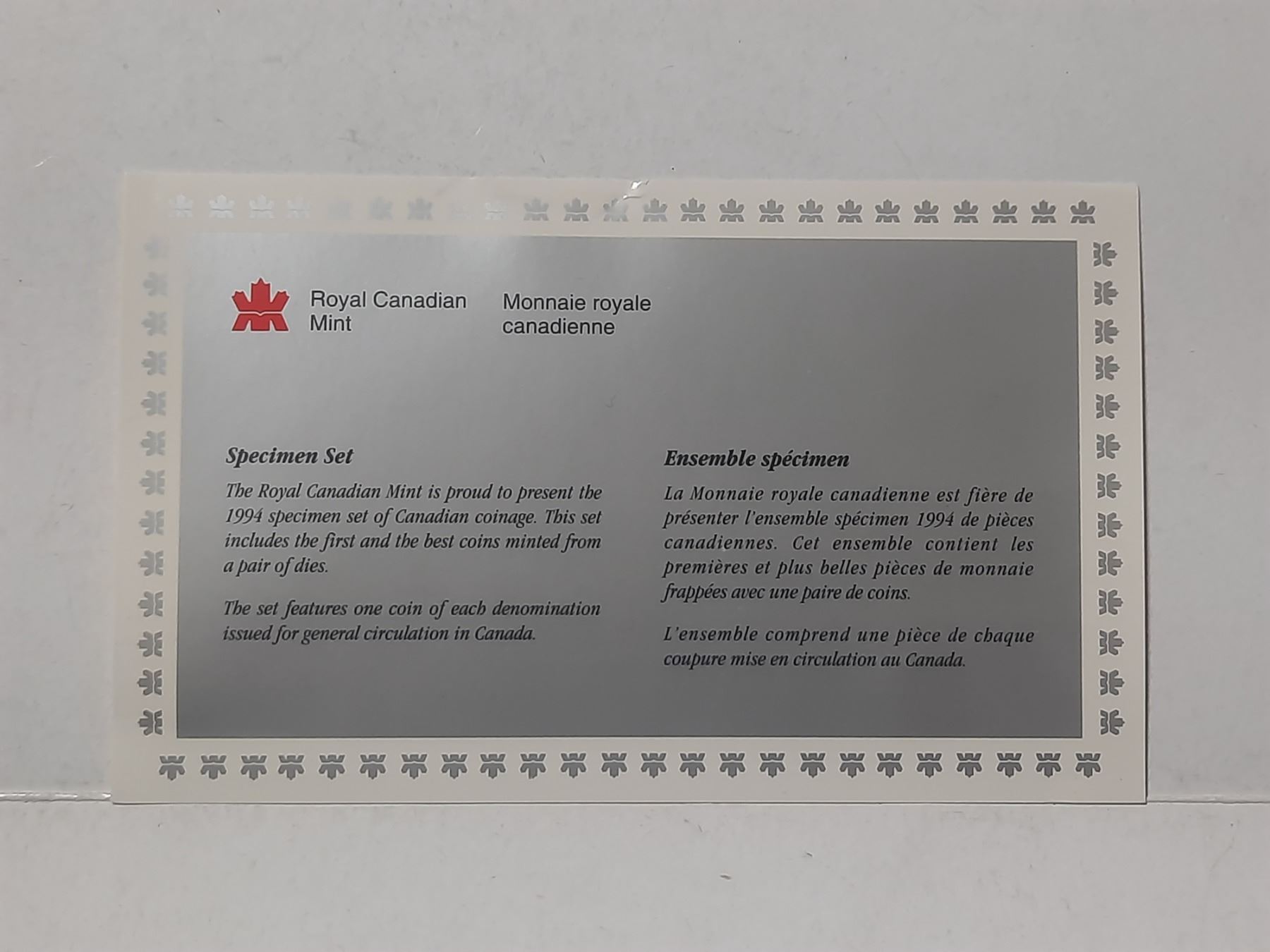 1994 Specimen Set. 6 coins.
