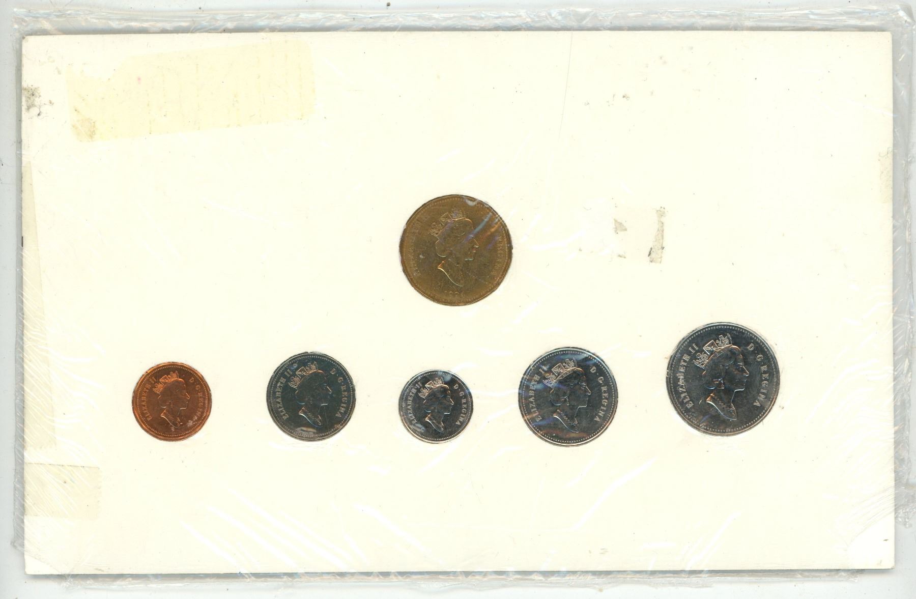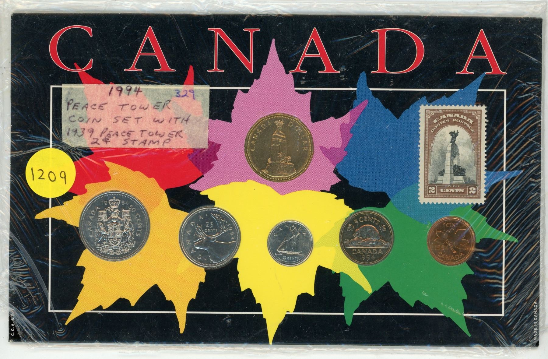1994 Year Set. The Loonie depicts the War Memorial in Ottawa. Includes old stamp.