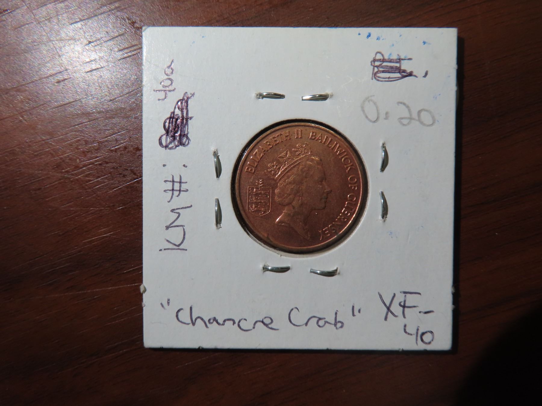 1994 one penny " chance crab" guernsey XF-40 KM#40A
