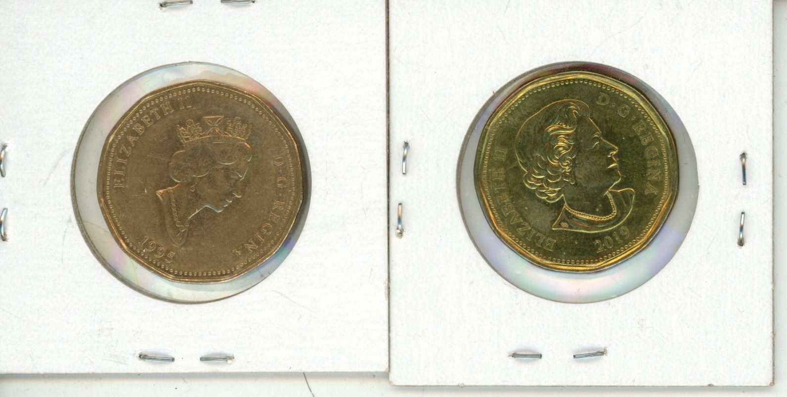 1995 Canadian "Peacekeeping" and 2019 Canadian One Dollar Coins.