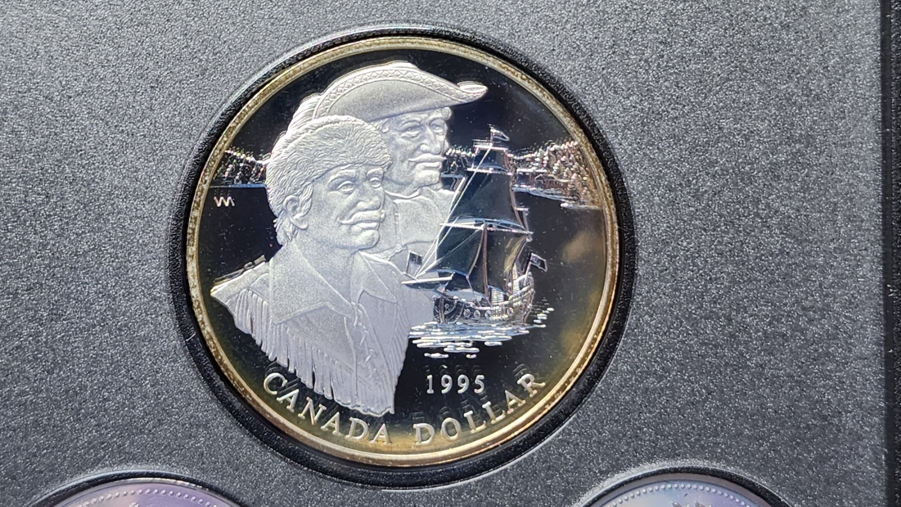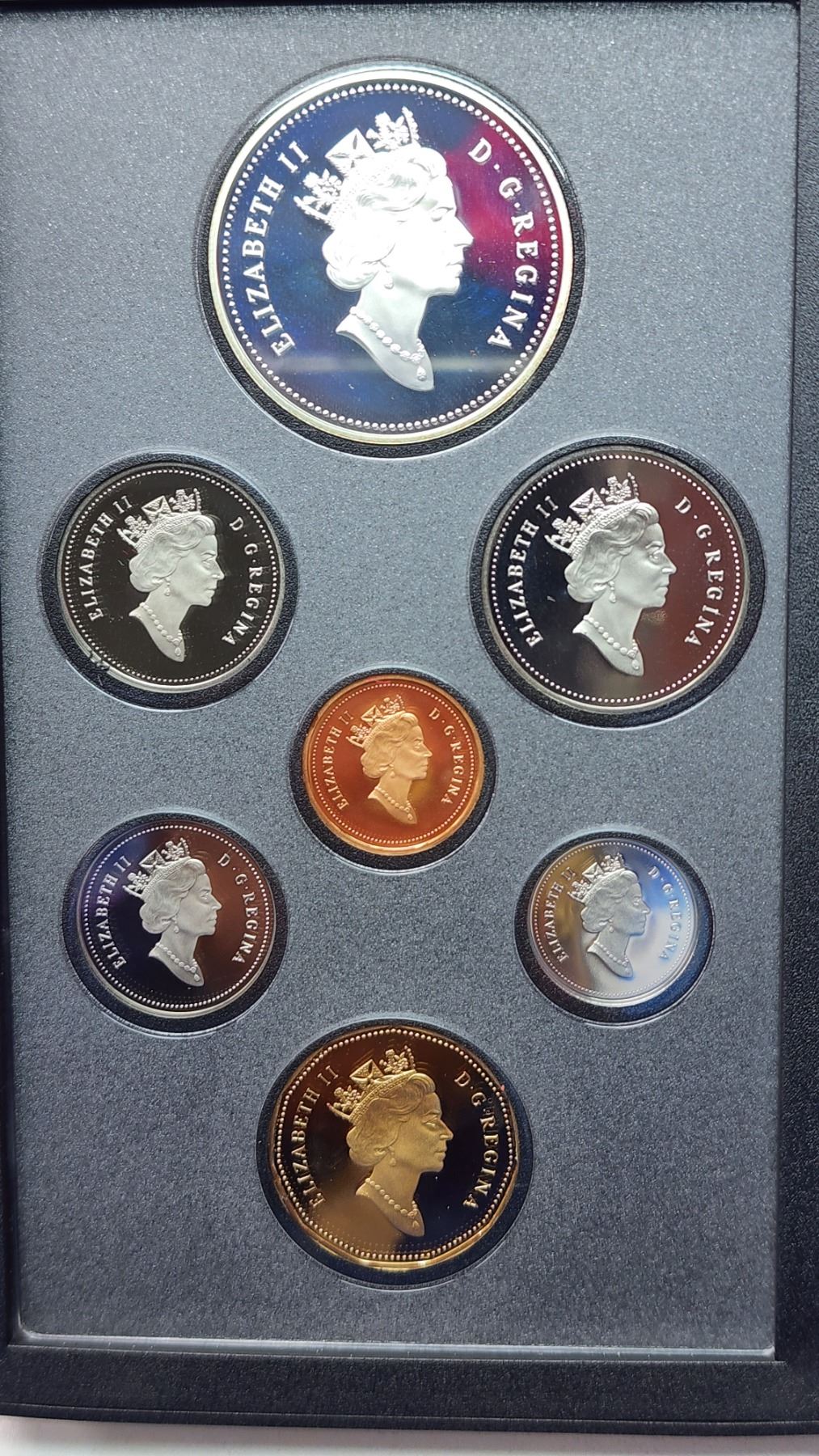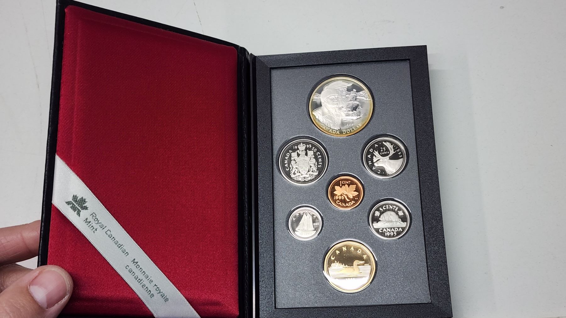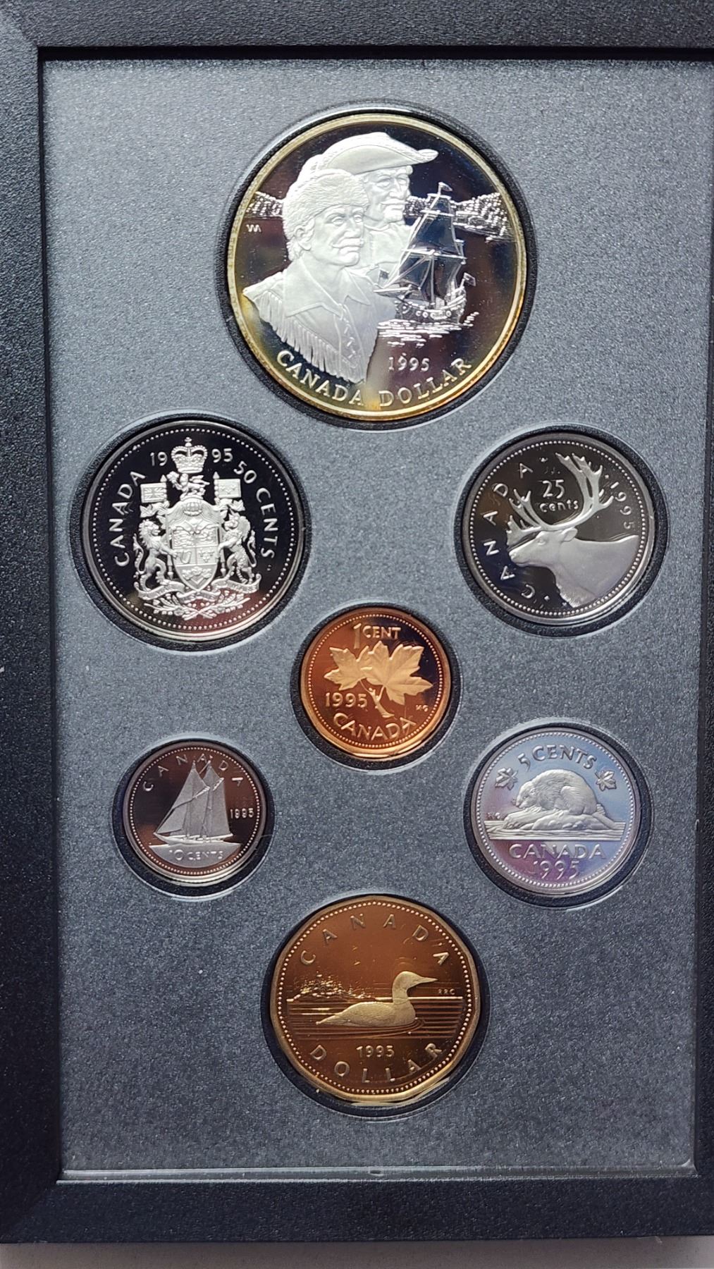 1995 Double Dollar Proof Set. 7-coin set includes Silver Dollar that commemorates the 325th Anniversary of the Hudson’s Bay Company. Proof with Ultra Heavy Cameo. Housed in its original black case of issue.