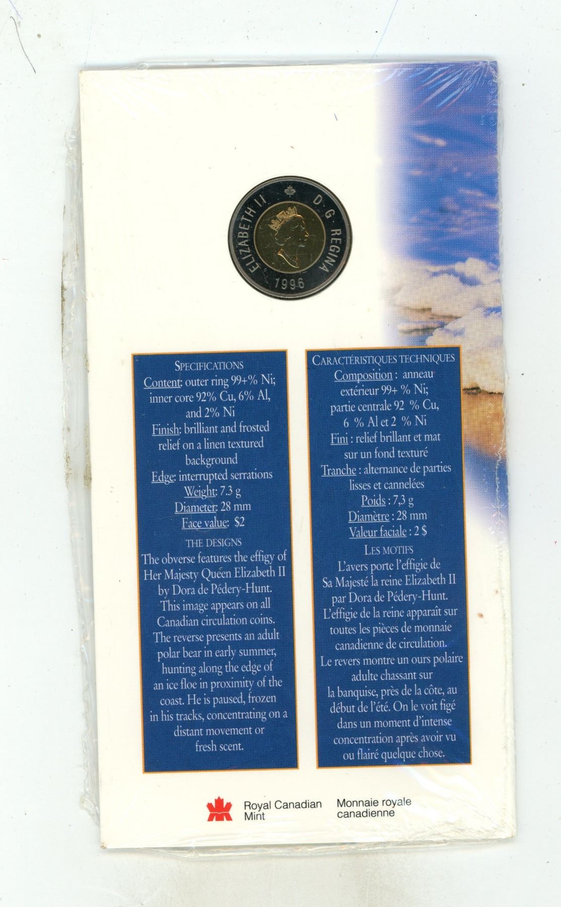 1996 $2 Toonie. Canada’s New Uncirculated Coin. Housed in its original unopened RCM folder.