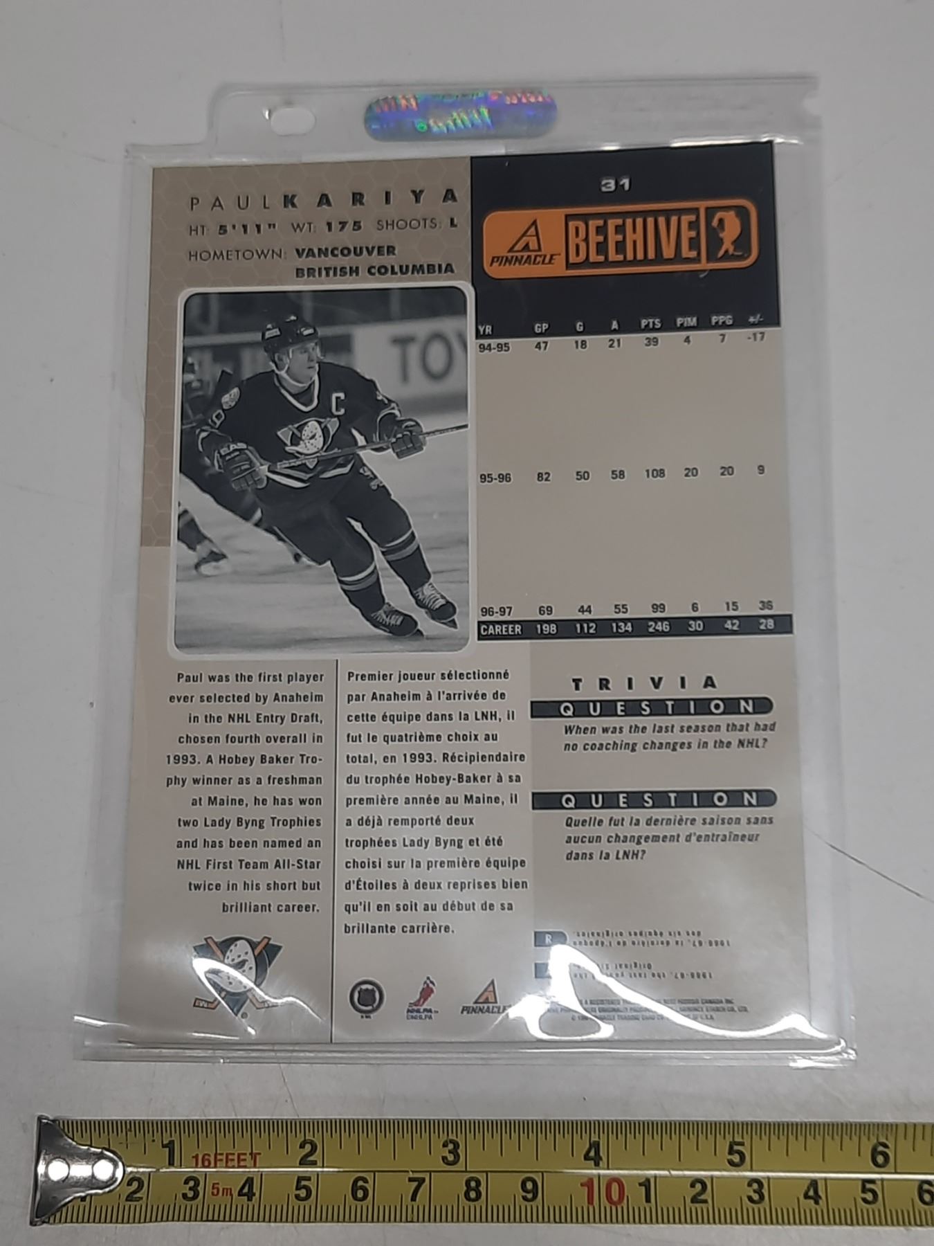 1997-98 Pinnacle Beehive #31 Paul Kariya jumbo trading card.