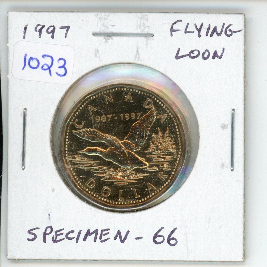1997 Flying Loon Dollar. Commemorates the 10th Anniversary of the first Loonie. Specimen-66.