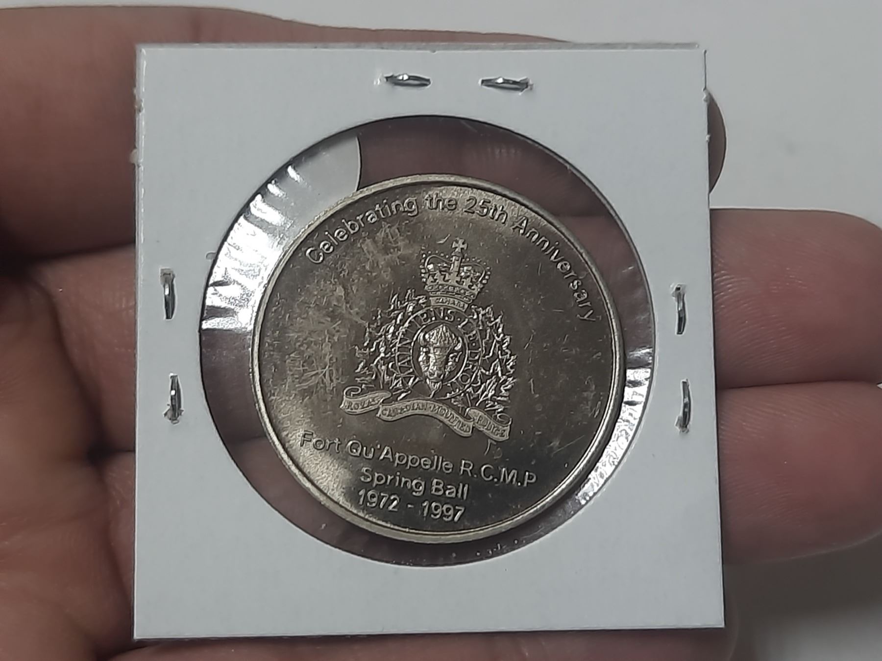 1997 Fort Qu’Appelle Sask. Trade Dollar commemorating the oldest original Hudson’s Bay Store in Canada and the RCMP Spring Ball. Unc.