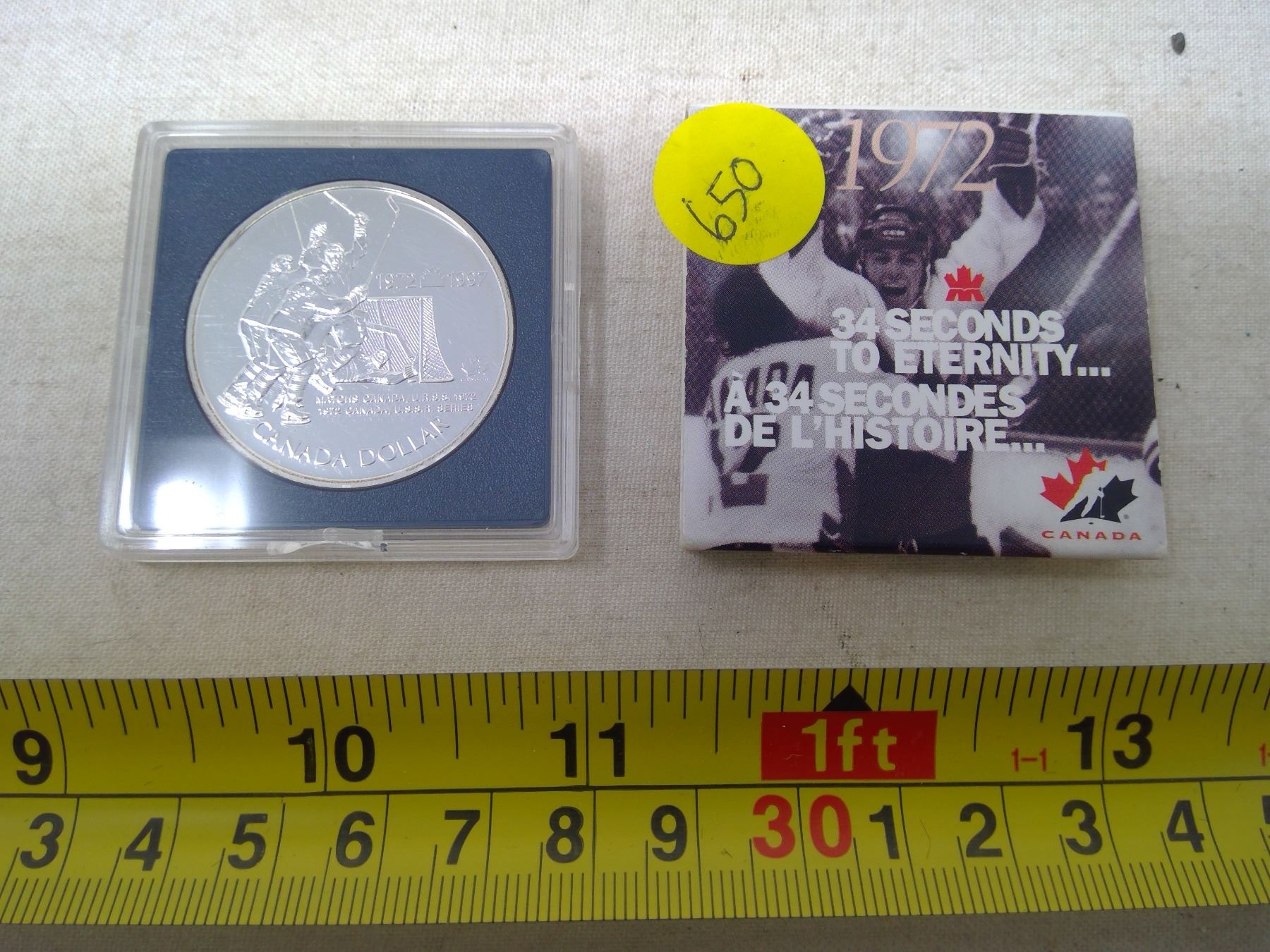 1997 SPECIMEN SILVER DOLLAR THAT COMMEMORATES THE 1972 CANADA-RUSSIA HOCKEY SERIES. IN CASE OF ISSUE.