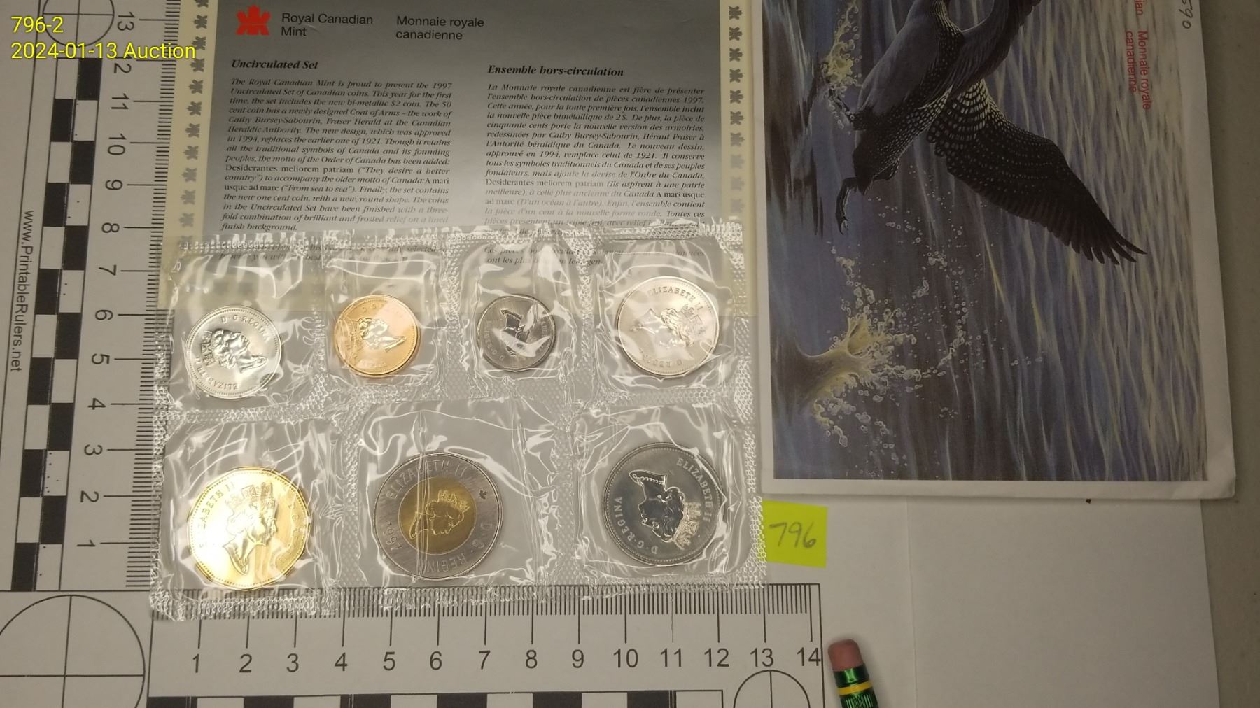 1997 Seven Coin Toonie, Loonie, Fifty Cent Piece, Quarter, Dime, Nickel, Penny Set