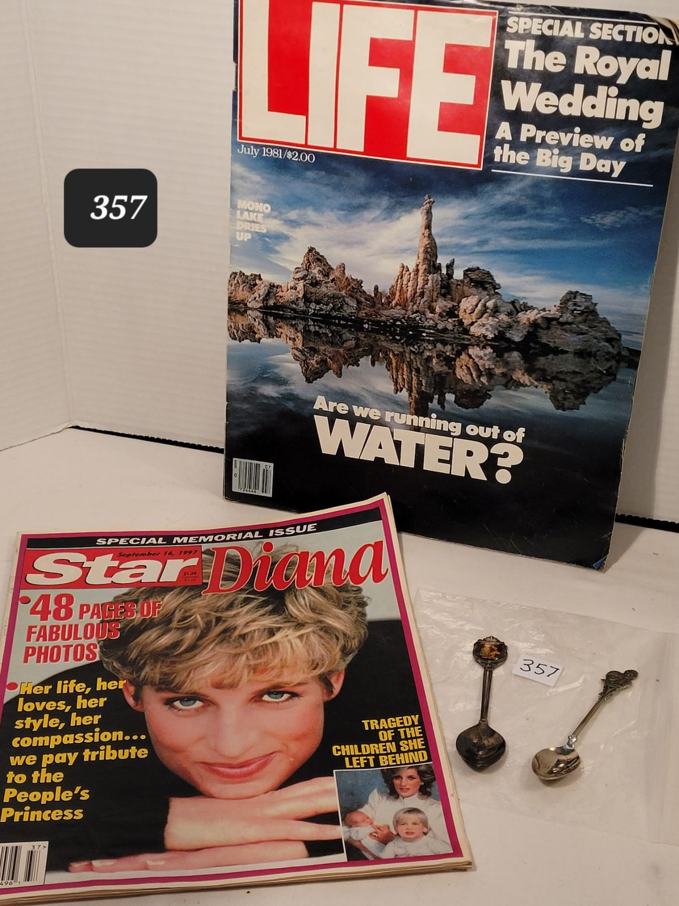 1997 Star special edition “Diana” issue & Life royal wedding section, with silver 1981 Marriage & 1982 Birth spoons.