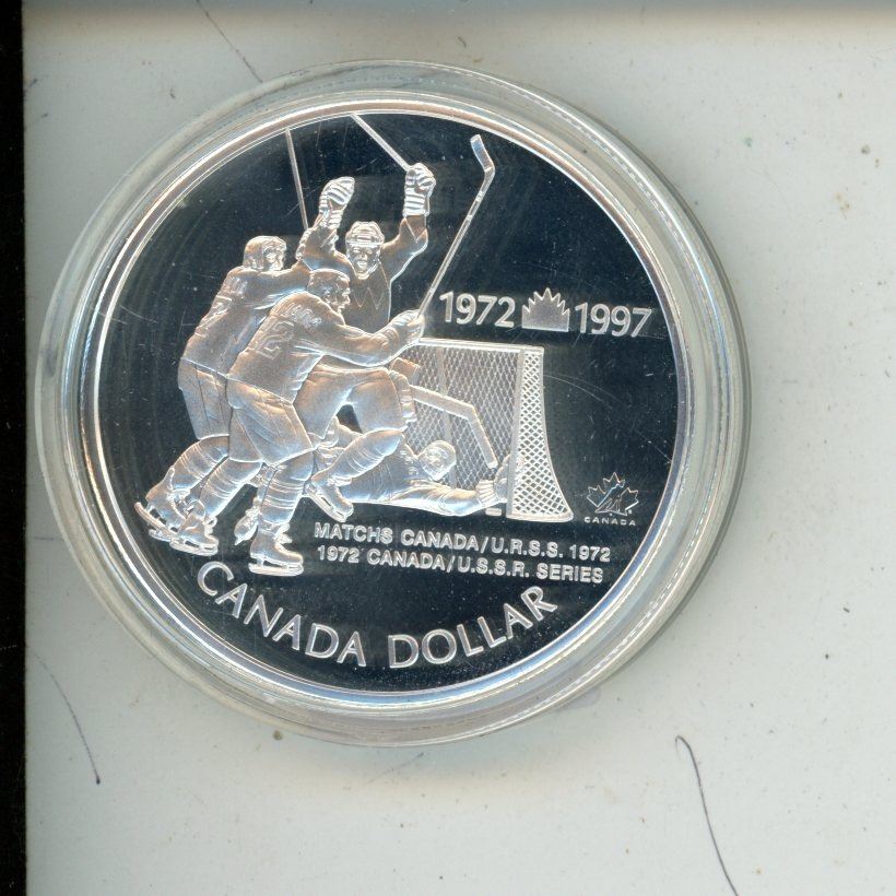 1997 proof 1 dollar coin , 25th anniversary canada vs USSR hockey, (.925 silver)