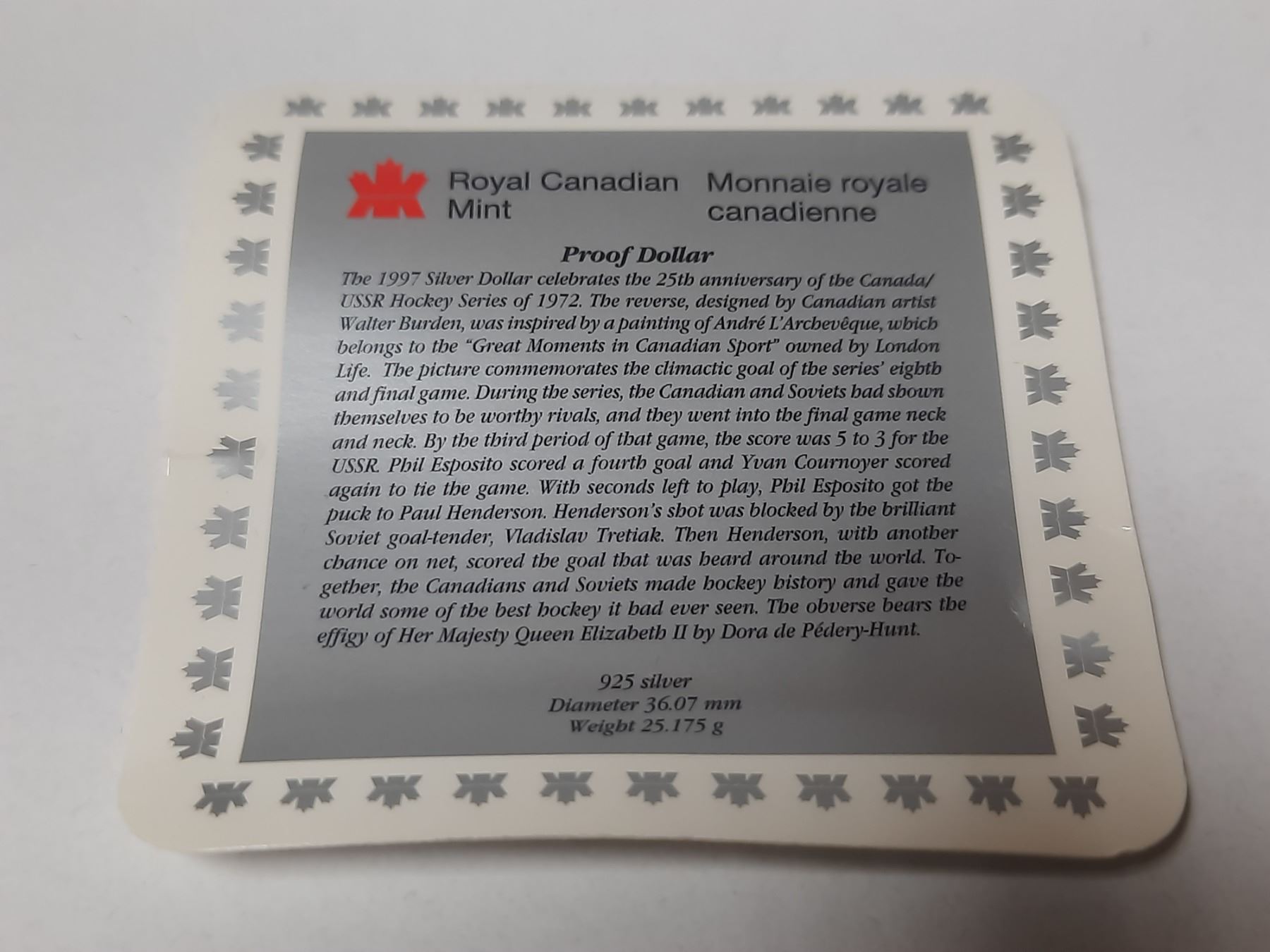 1997 silver dollar025th anniversary of the Canada/ USSB hockey series of 1972