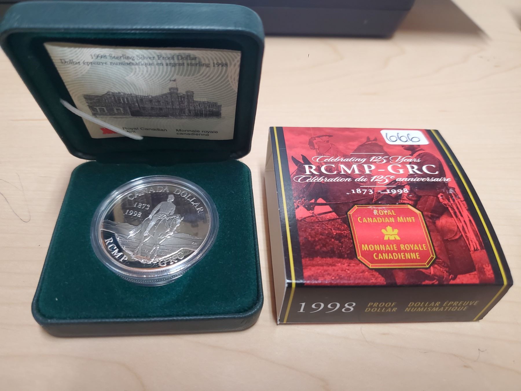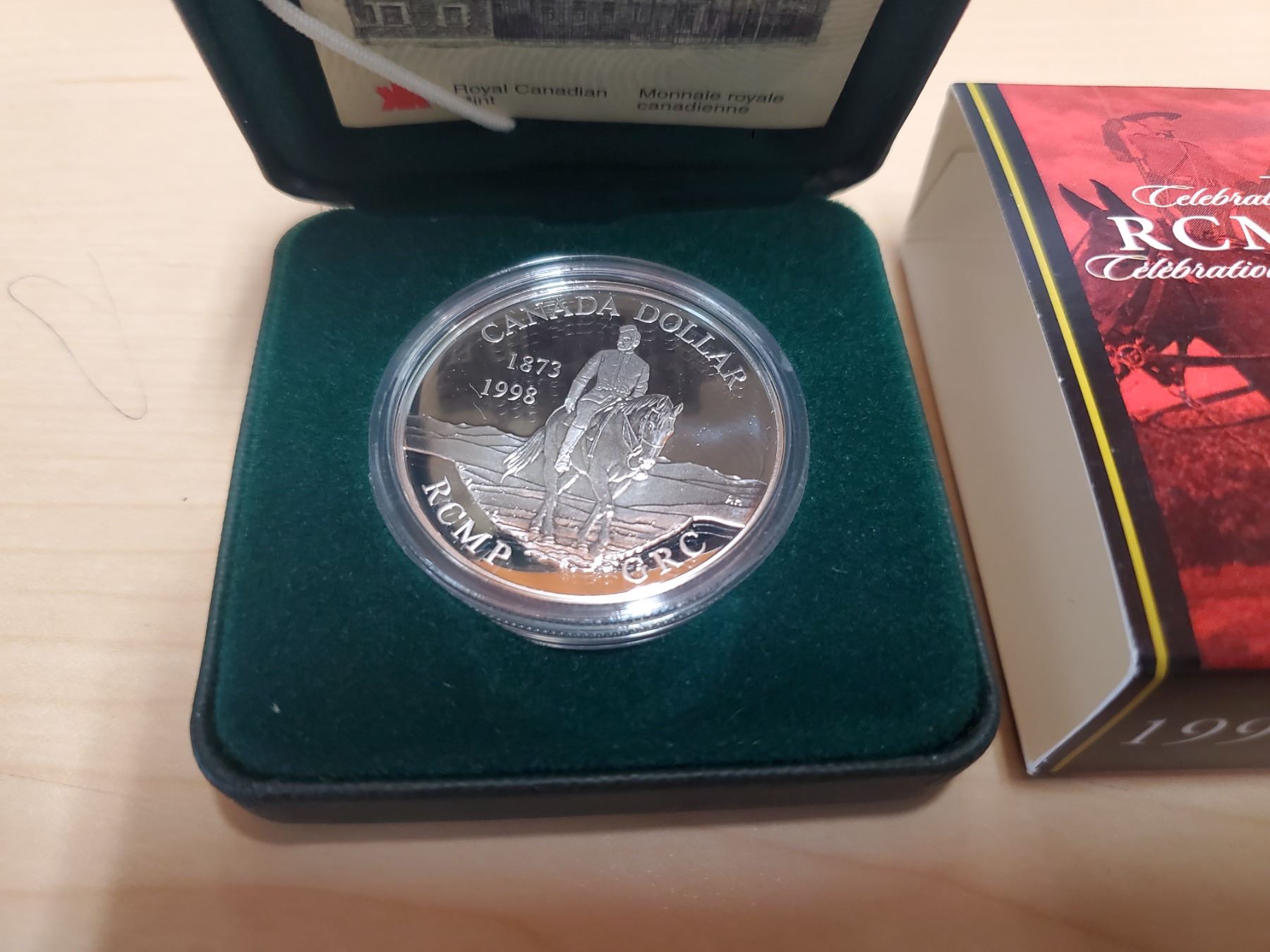 1998 RCMP Silver Dollar. Celebrates the 125th Anniversary of the founding of the North West Mounted Police in 1873. Proof. Bright White. Housed in its original green case.