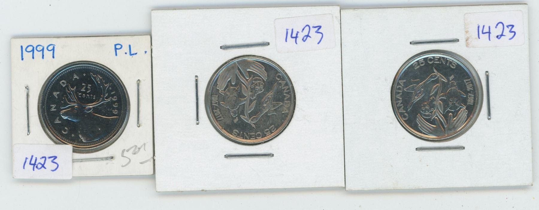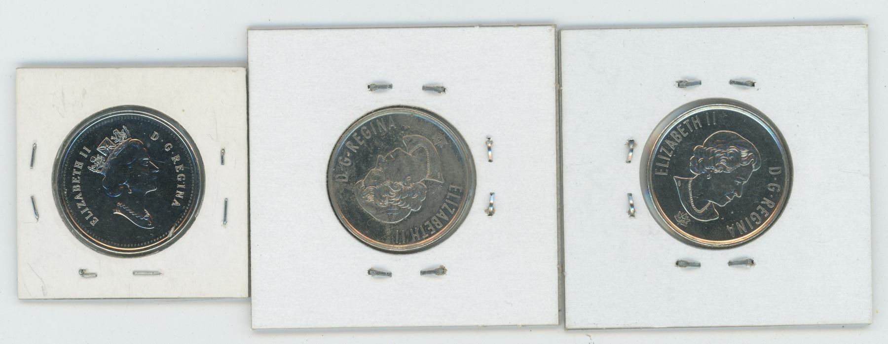 1999 & 2 X 2017 Canadian 25 Cent Coins