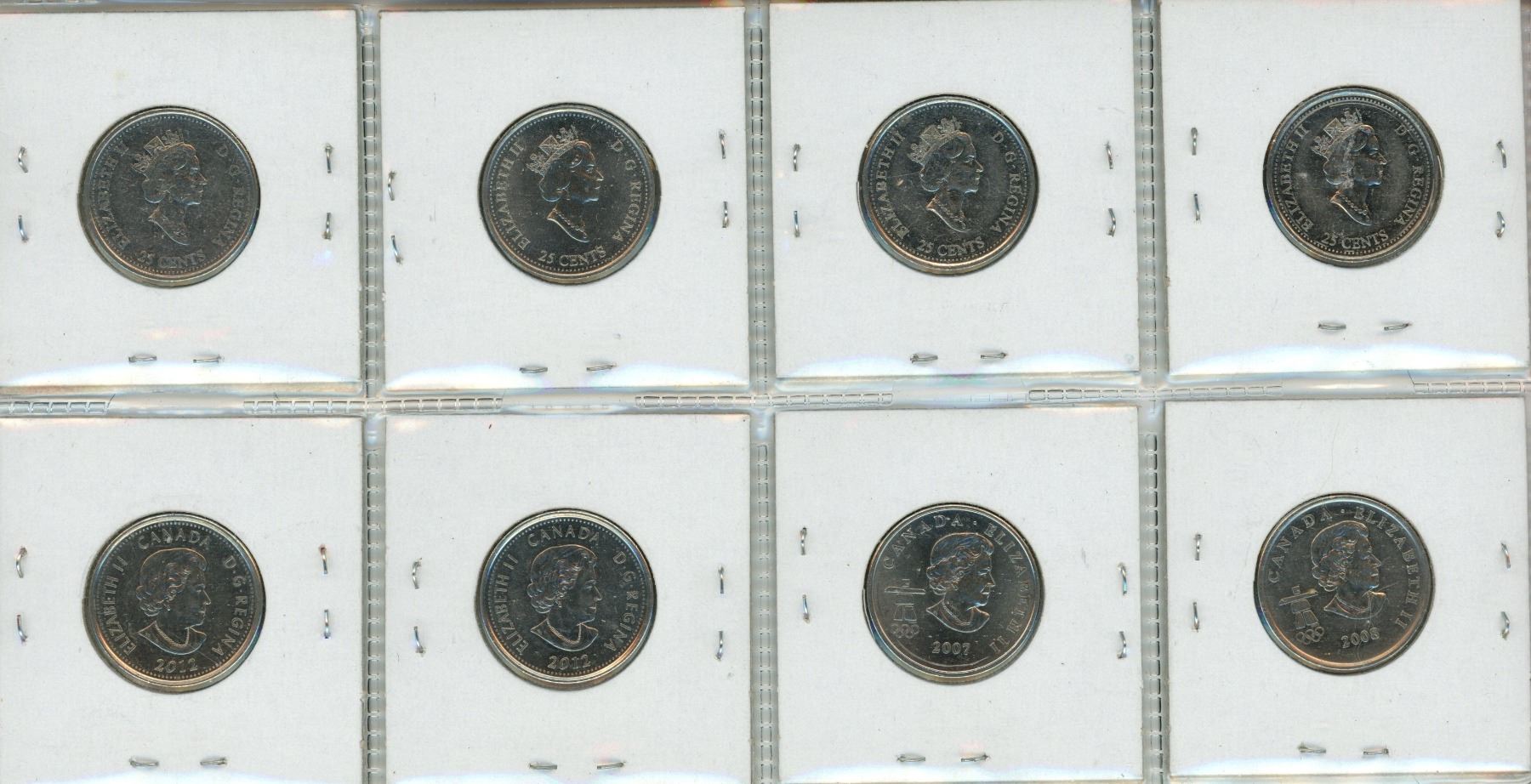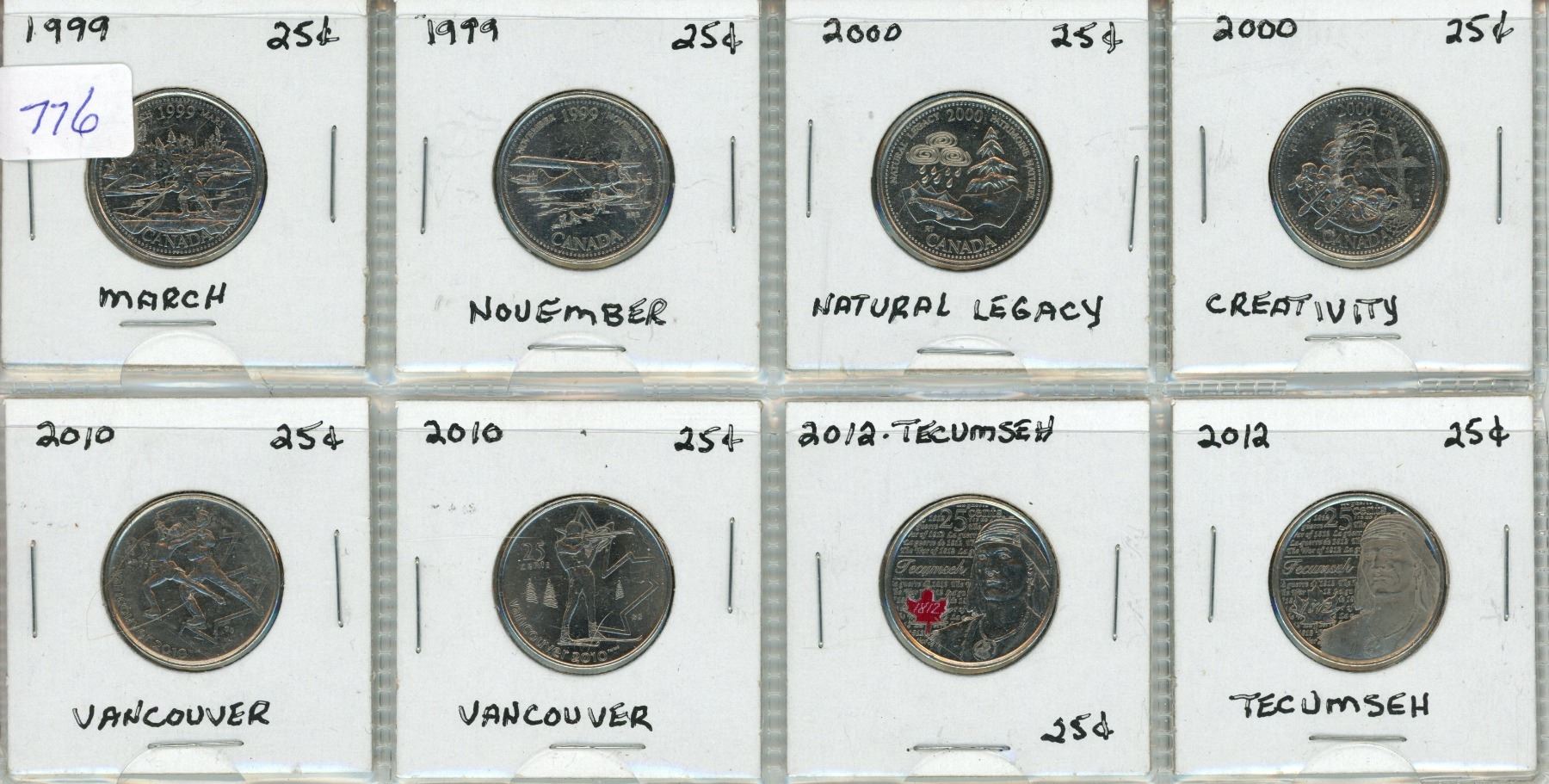 1999, 2000, 2010, 2012 Canadian Special 25 Cents Coins.